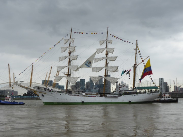 ARC  GLORIA romagic. 24 * *Click a Photo Above   once Big, click Right    Arrow in corner >   to start Slide Show   or Fast F/FW  > L:64x10m (209x34ft+) ARC  GLORIA Built 1968 Wednesday 3rd July 2024 Columbian Tall Sail training ship arrives 11am  high tide. Weather very overcast and when the ship was entering West India Dock it started raining, lots of people who turned up to see the ship got soaked. Dep: Sat 06 July