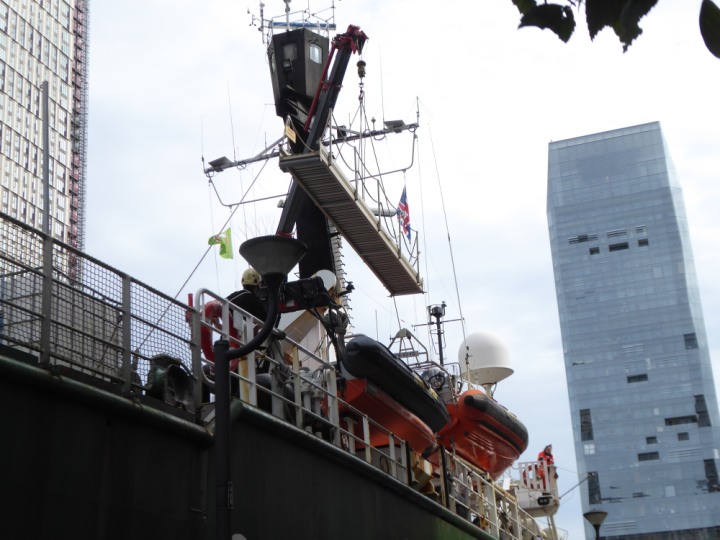 ARCTIC SUNRISE romagic. 24 * *Click a Photo Above   once Big, click Right    Arrow in corner >   to start Slide Show   or Fast F/FW  > I did get these photos of it's departure on Sunday 29th on a dry sunny morning. Wednesday 25 September 2024 West India Dock this ship arrived early, rain showers were on and off all day. no photos. GREENPEACE ARCTIC SUNRISE L:50.5x11.55m (165x37.9ft+)