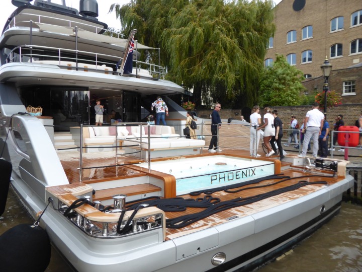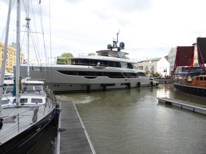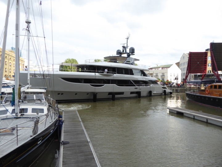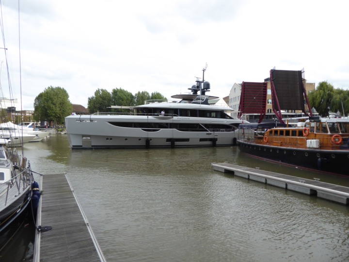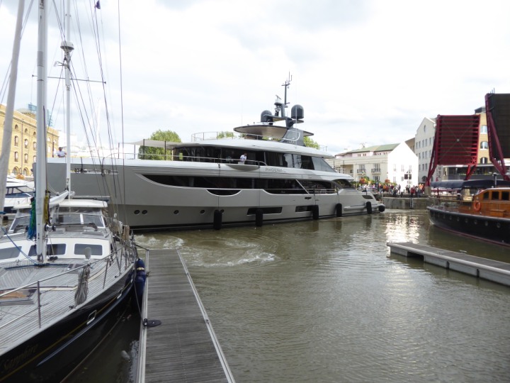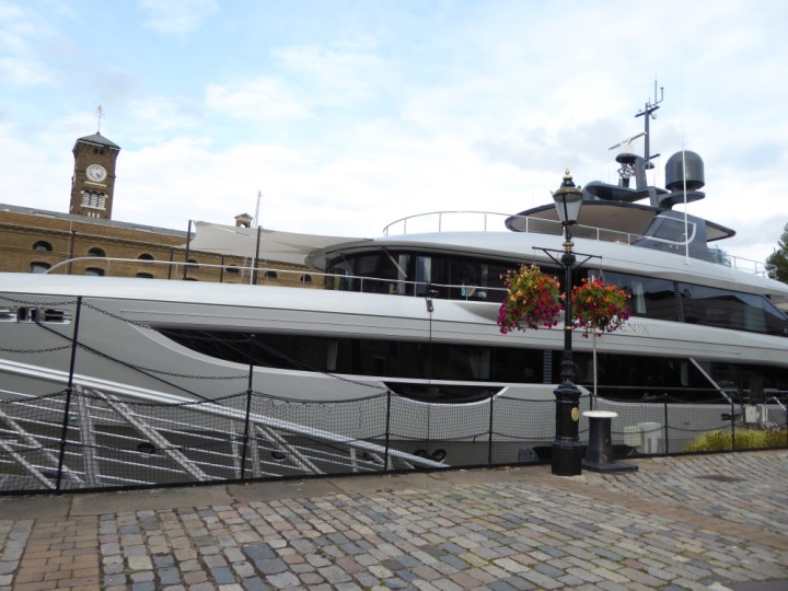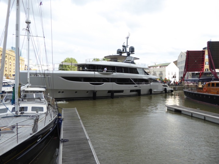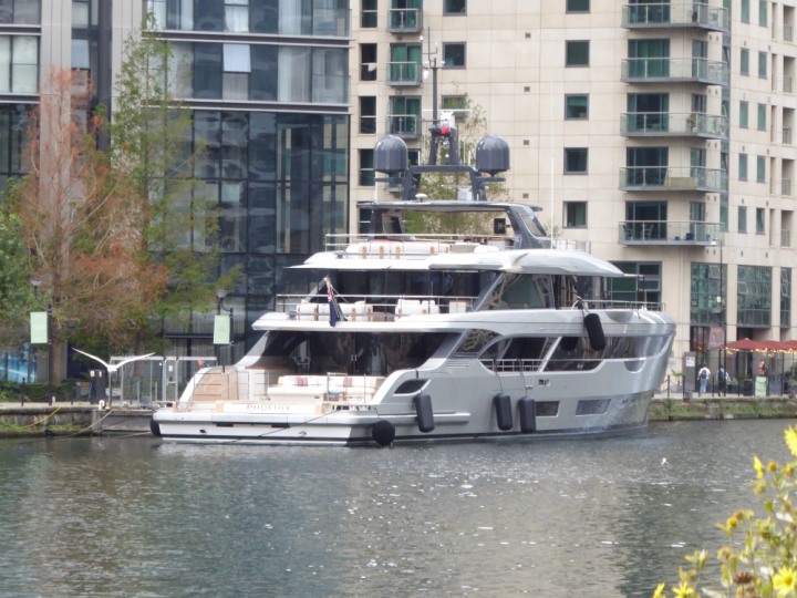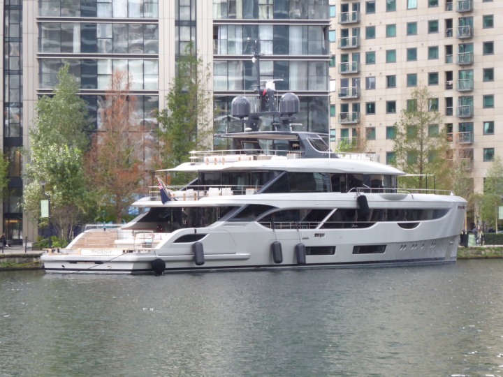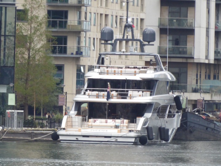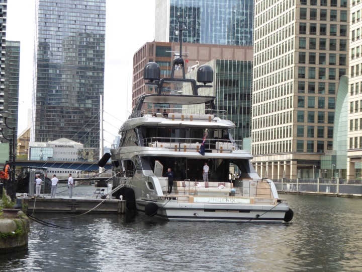 PHONIX .23 L:40x8m (131x26ft+) romagic.co.uk * *Click a Photo Above   once Big, click Right    Arrow in corner >   to start Slide Show   or Fast F/FW  > Sunday 01 October 2023 Super Yacht now moved  from West India Dock to St Katherine Dock up by Tower Bridge. Last here 22 December 2022 for Christmas and New Year