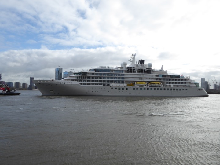SILVER ENDEAVOUR * romagic. 24 *Click a Photo Above   once Big, click Right    Arrow in corner >   to start Slide Show   or Fast F/FW  > L:164x28.4m (538x93ft+) SILVER ENDEAVOUR Friday 05 April  08:30am The First Super Yacht to visit London 2024 Two Tugs spun the ship around at the 02 Dome to reverse back to the Greenwich Tier Terminal. Departure: Sunday 7th at 13:00