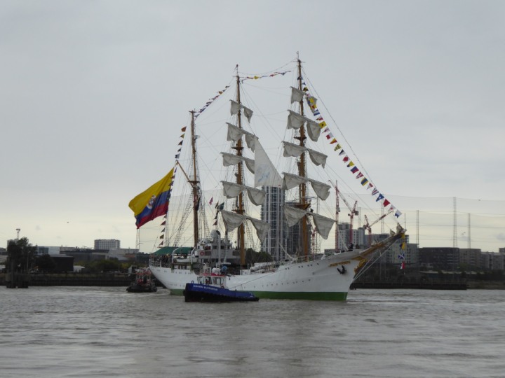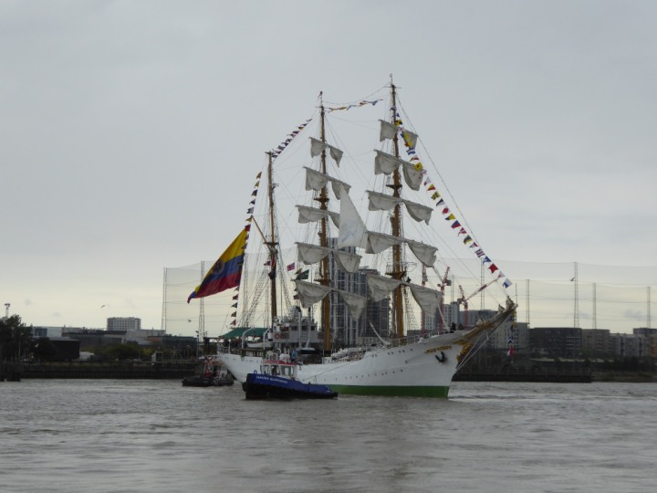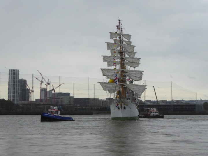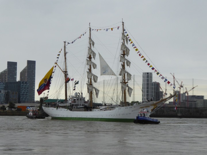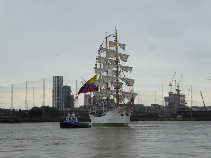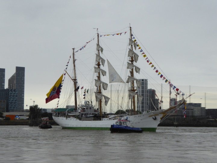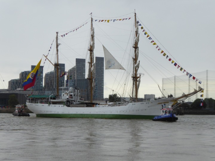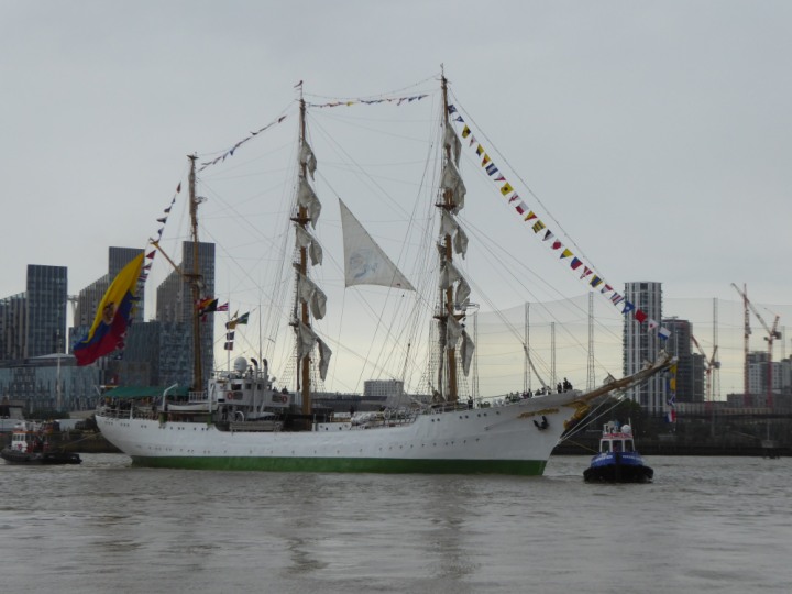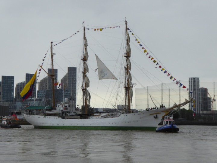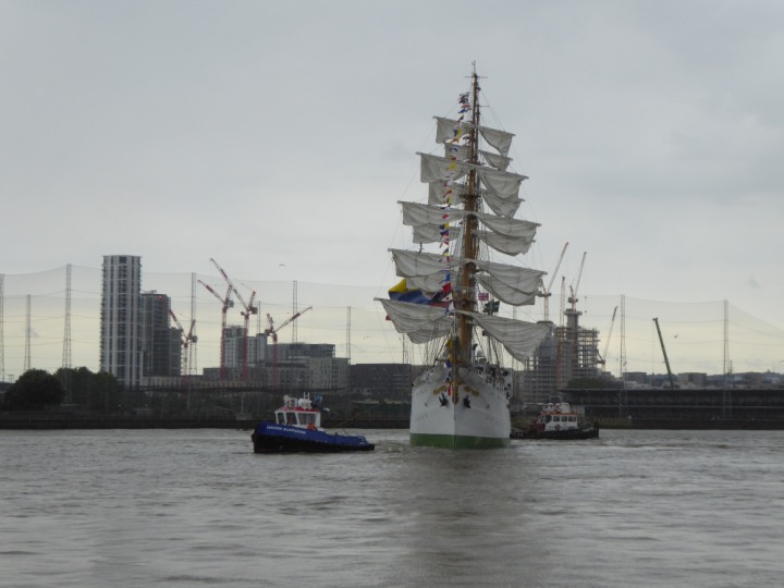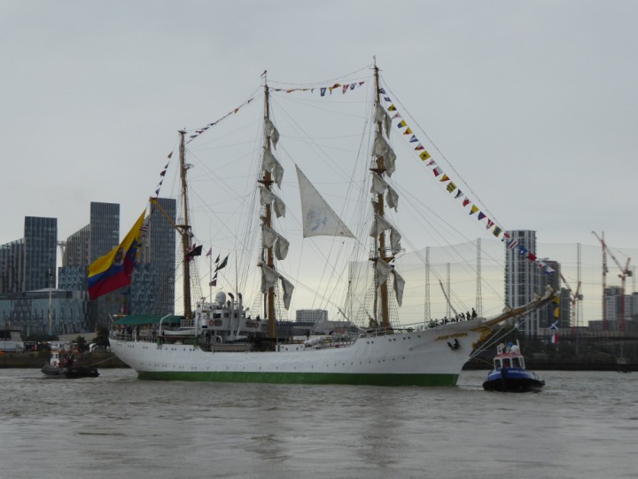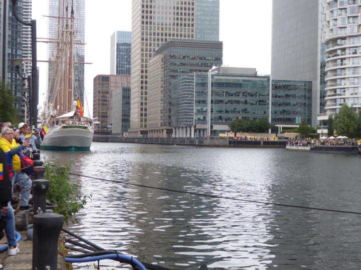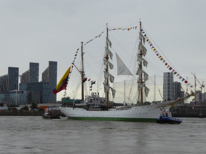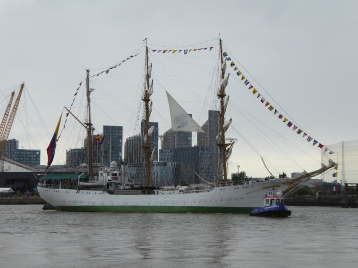 ARC  GLORIA romagic. 24 * *Click a Photo Above   once Big, click Right    Arrow in corner >   to start Slide Show   or Fast F/FW  > L:64x10m (209x34ft+) ARC  GLORIA Built 1968 Wednesday 3rd July 2024 Columbian Tall Sail training ship arrives 11am  high tide. Weather very overcast and when the ship was entering West India Dock it started raining, lots of people who turned up to see the ship got soaked. Dep: Sat 06 July