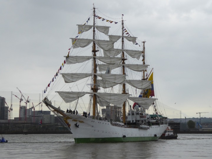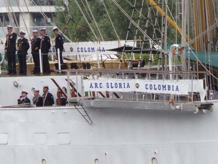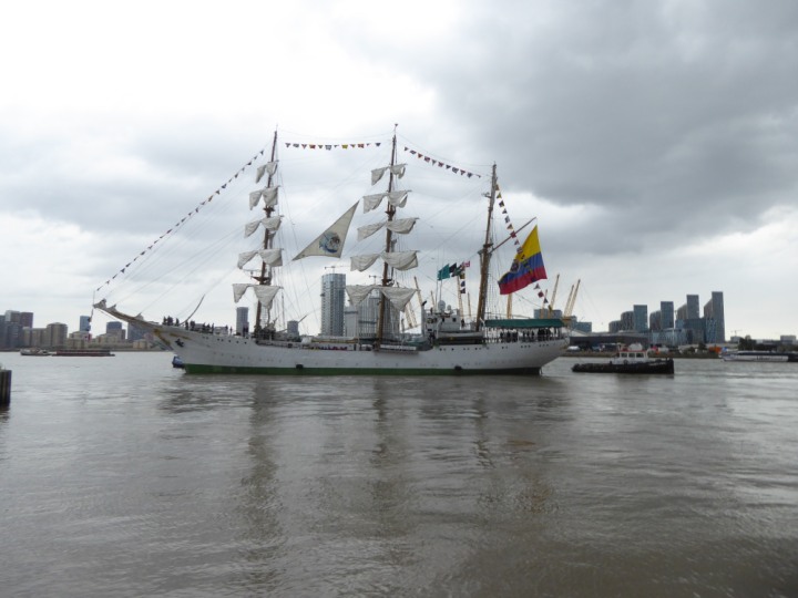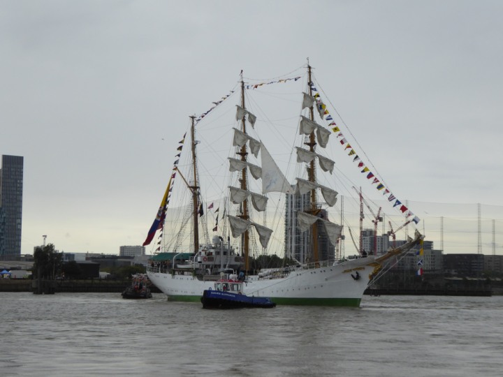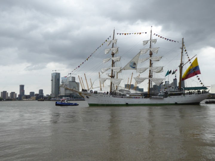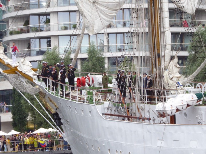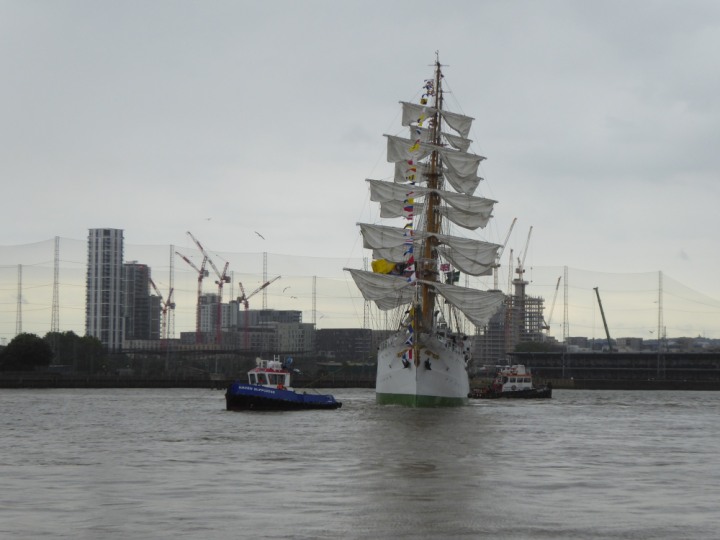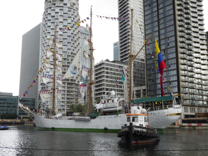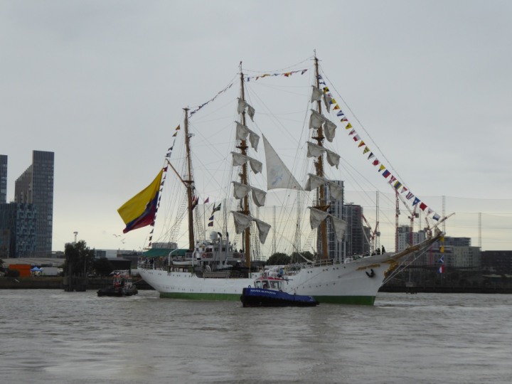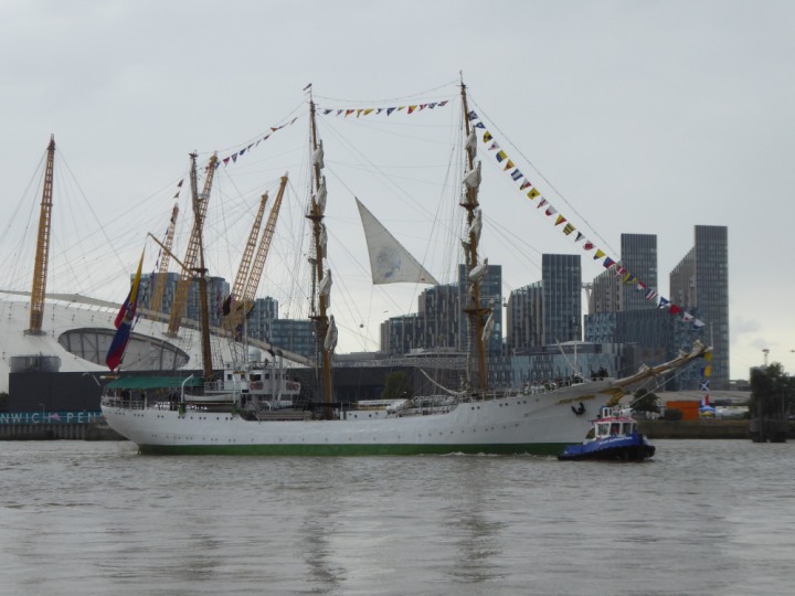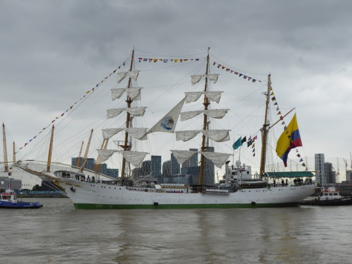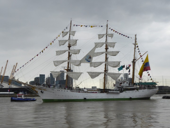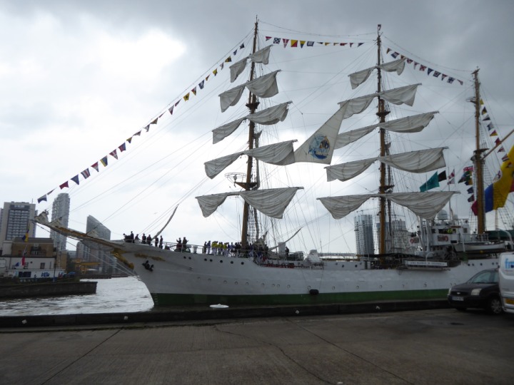 ARC  GLORIA romagic. 24 * *Click a Photo Above   once Big, click Right    Arrow in corner >   to start Slide Show   or Fast F/FW  > L:64x10m (209x34ft+) ARC  GLORIA Built 1968 Wednesday 3rd July 2024 Columbian Tall Sail training ship arrives 11am  high tide. Weather very overcast and when the ship was entering West India Dock it started raining, lots of people who turned up to see the ship got soaked. Dep: Sat 06 July