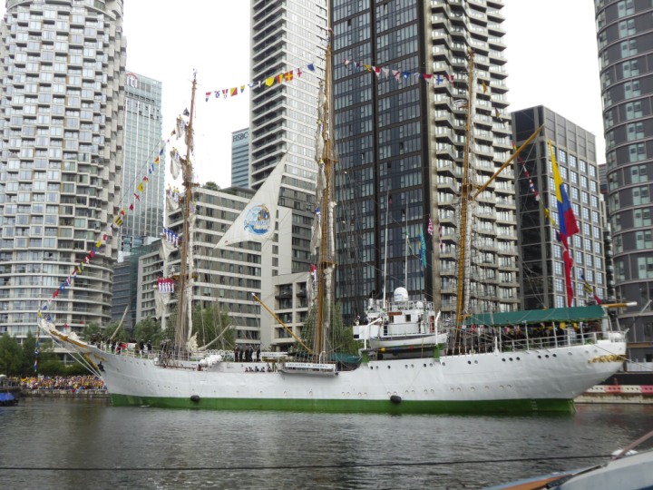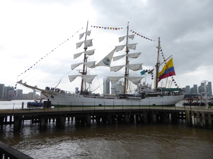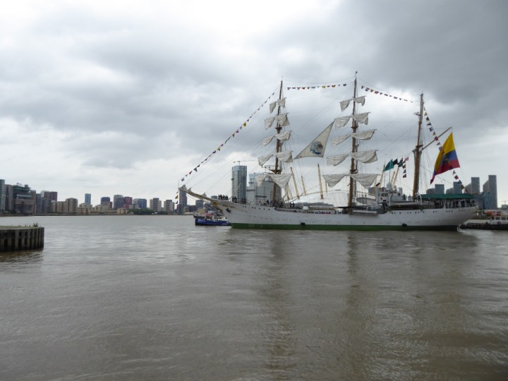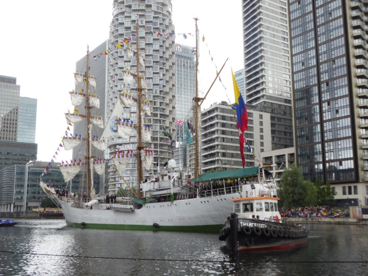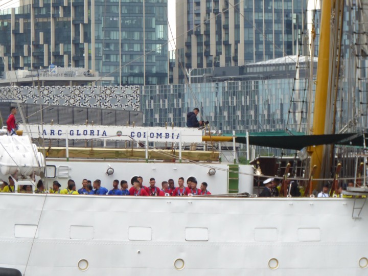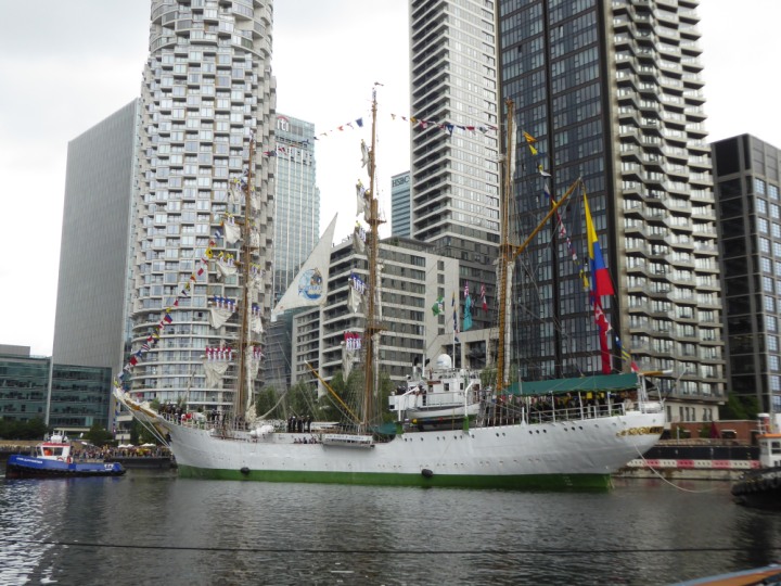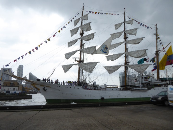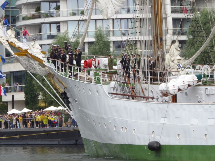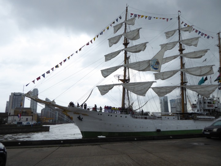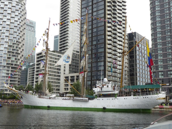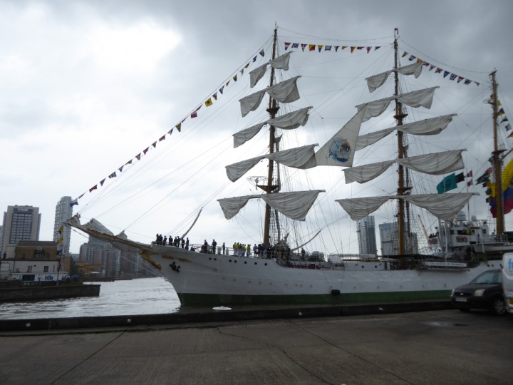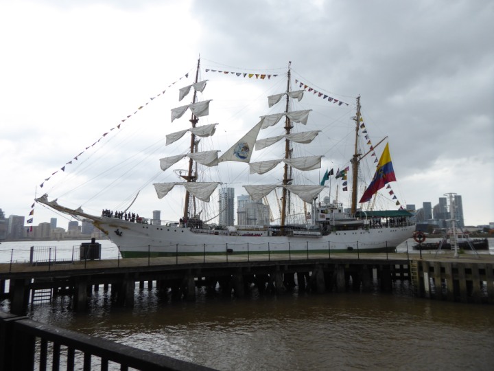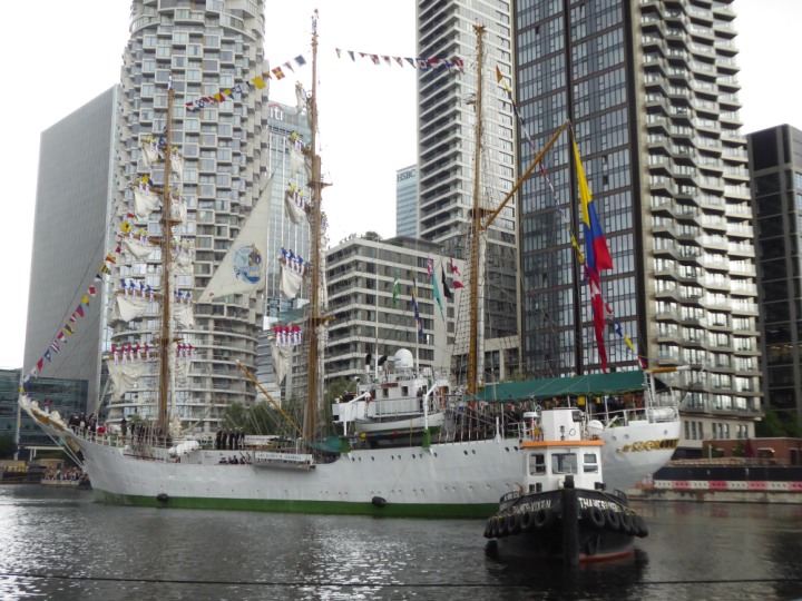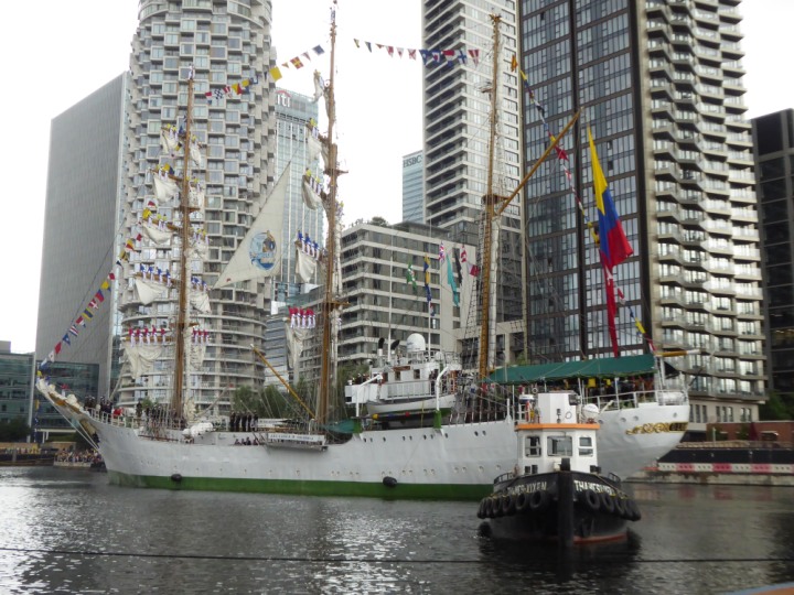 ARC  GLORIA romagic. 24 * *Click a Photo Above   once Big, click Right    Arrow in corner >   to start Slide Show   or Fast F/FW  > L:64x10m (209x34ft+) ARC  GLORIA Built 1968 Wednesday 3rd July 2024 Columbian Tall Sail training ship arrives 11am  high tide. Weather very overcast and when the ship was entering West India Dock it started raining, lots of people who turned up to see the ship got soaked. Dep: Sat 06 July