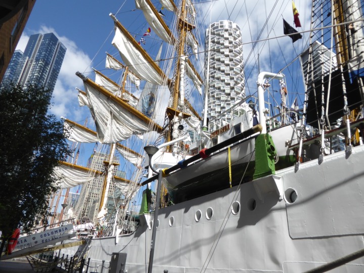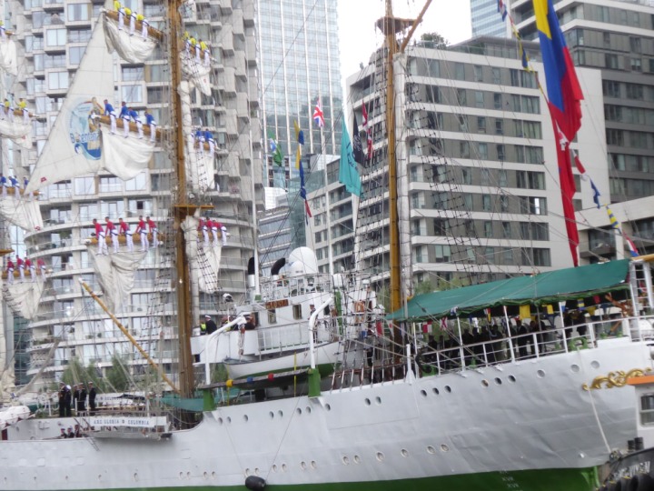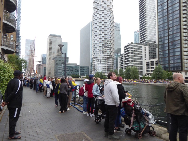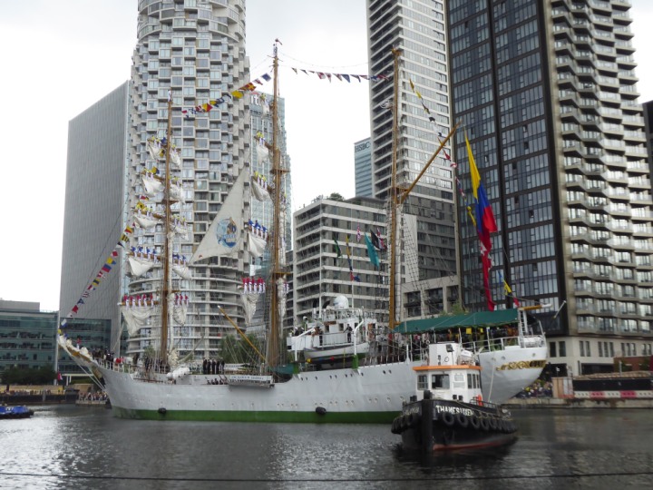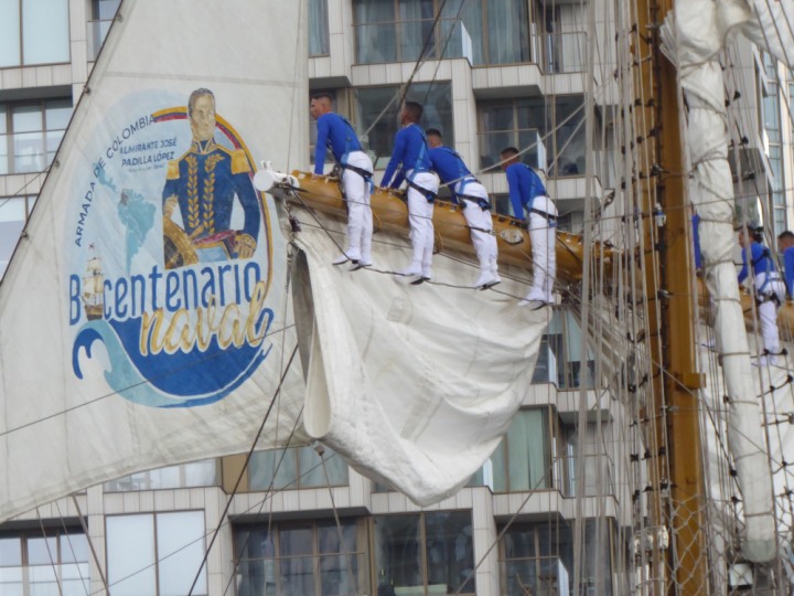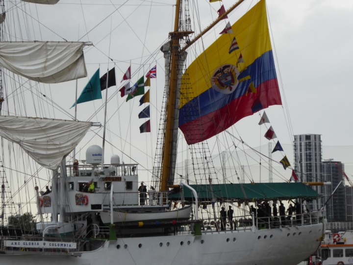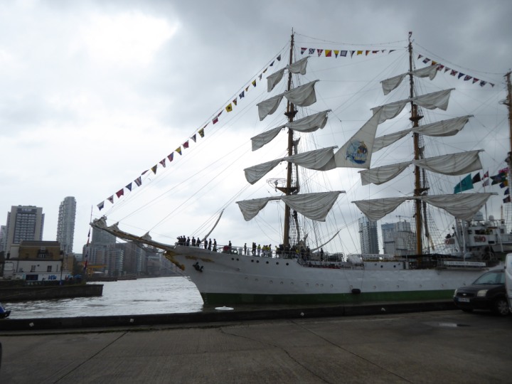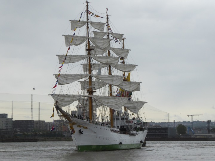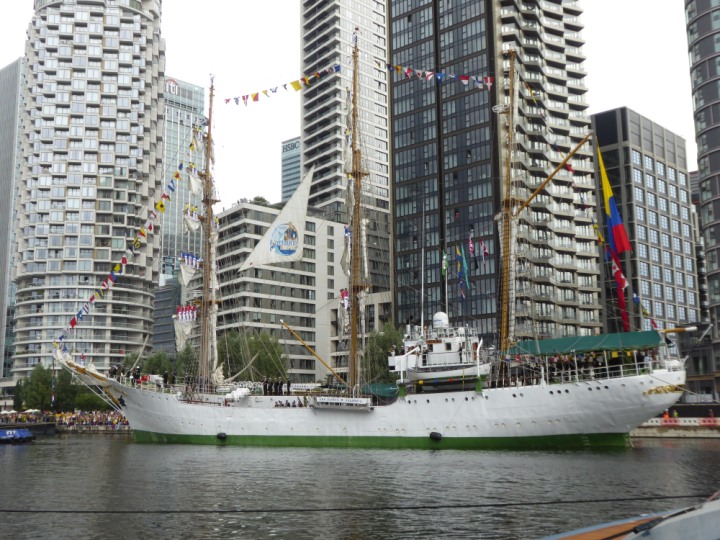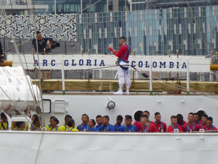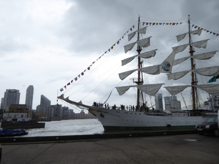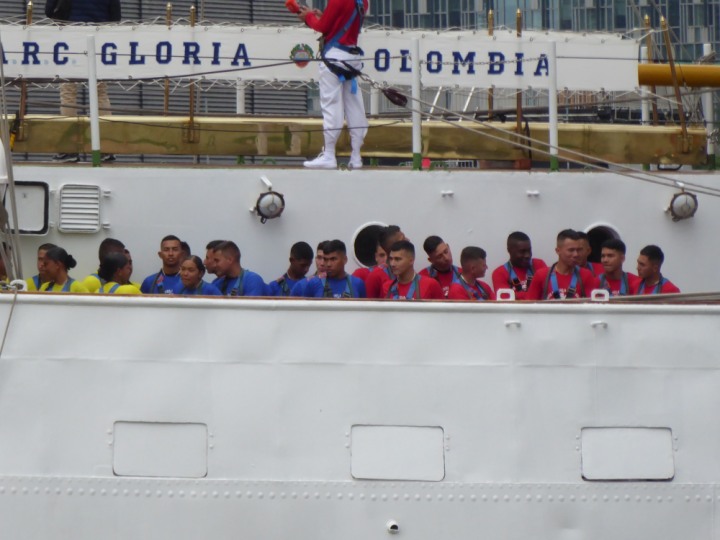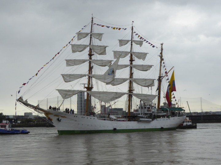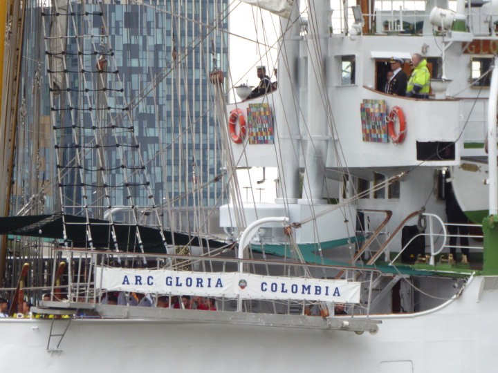 ARC  GLORIA romagic. 24 * *Click a Photo Above   once Big, click Right    Arrow in corner >   to start Slide Show   or Fast F/FW  > L:64x10m (209x34ft+) ARC  GLORIA Built 1968 Wednesday 3rd July 2024 Columbian Tall Sail training ship arrives 11am  high tide. Weather very overcast and when the ship was entering West India Dock it started raining, lots of people who turned up to see the ship got soaked. Dep: Sat 06 July