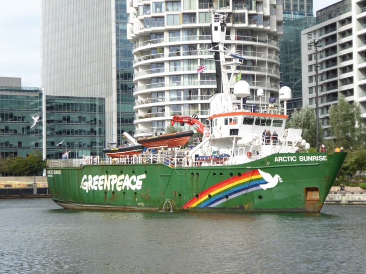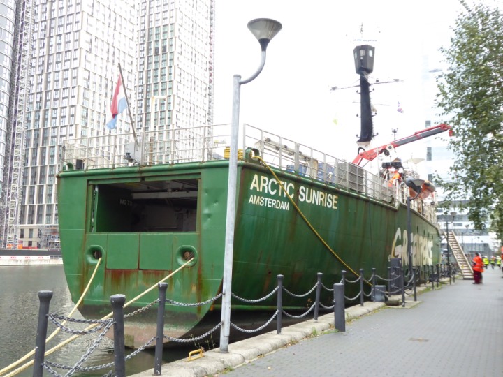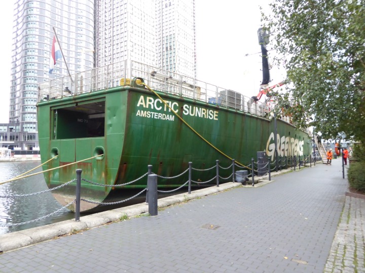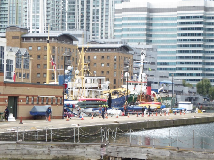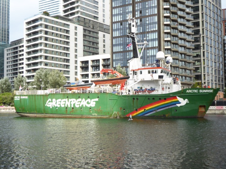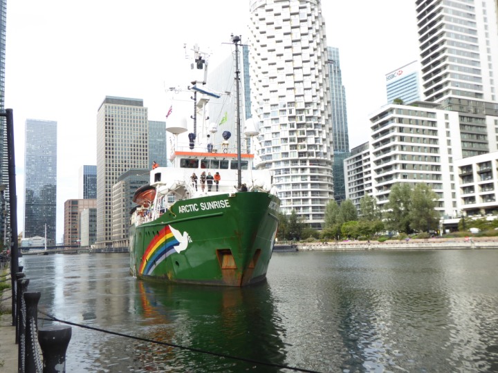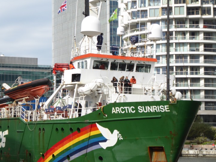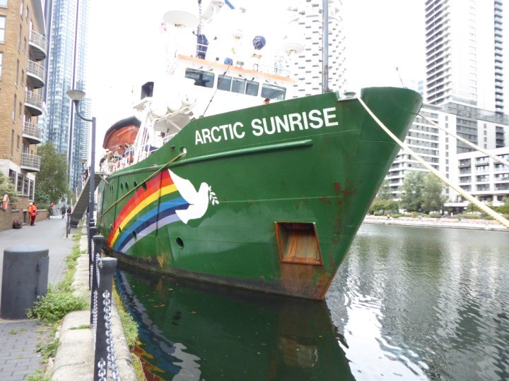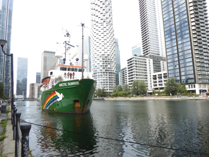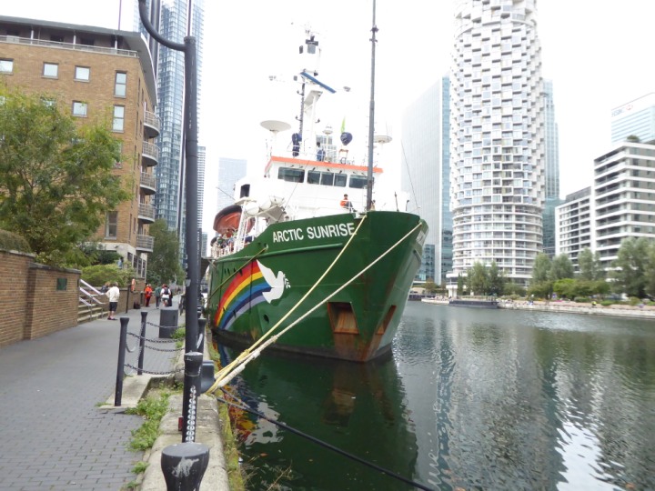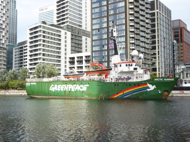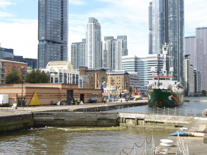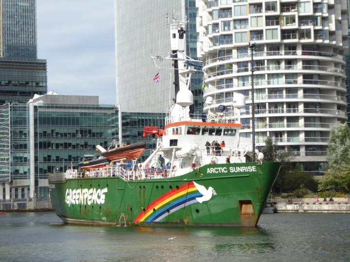 ARCTIC SUNRISE romagic. 24 * *Click a Photo Above   once Big, click Right    Arrow in corner >   to start Slide Show   or Fast F/FW  > I did get these photos of it's departure on Sunday 29th on a dry sunny morning. Wednesday 25 September 2024 West India Dock this ship arrived early, rain showers were on and off all day. no photos. GREENPEACE ARCTIC SUNRISE L:50.5x11.55m (165x37.9ft+)