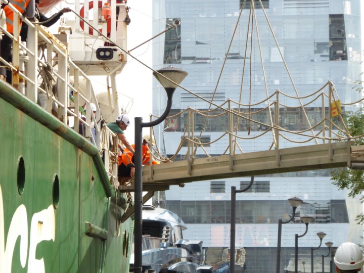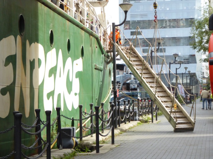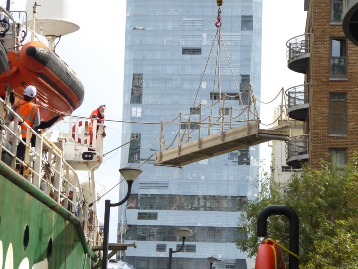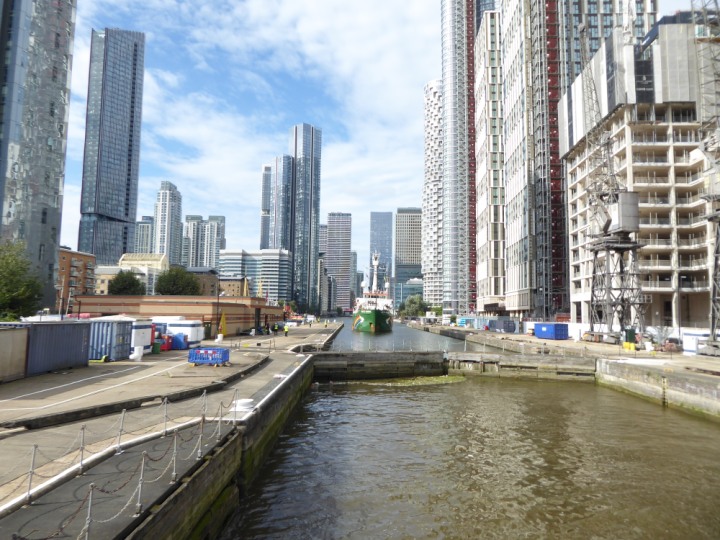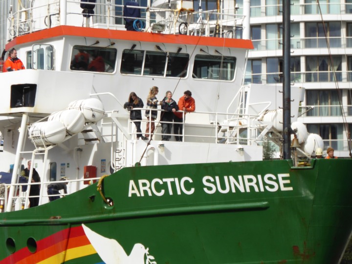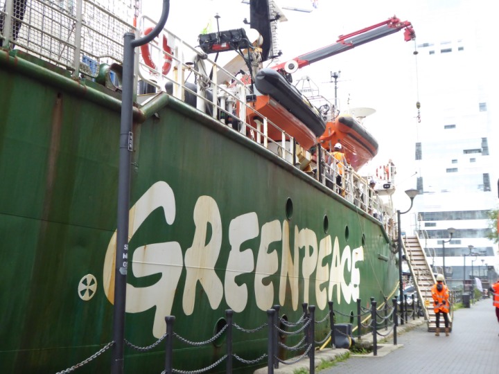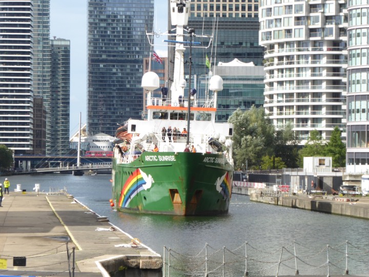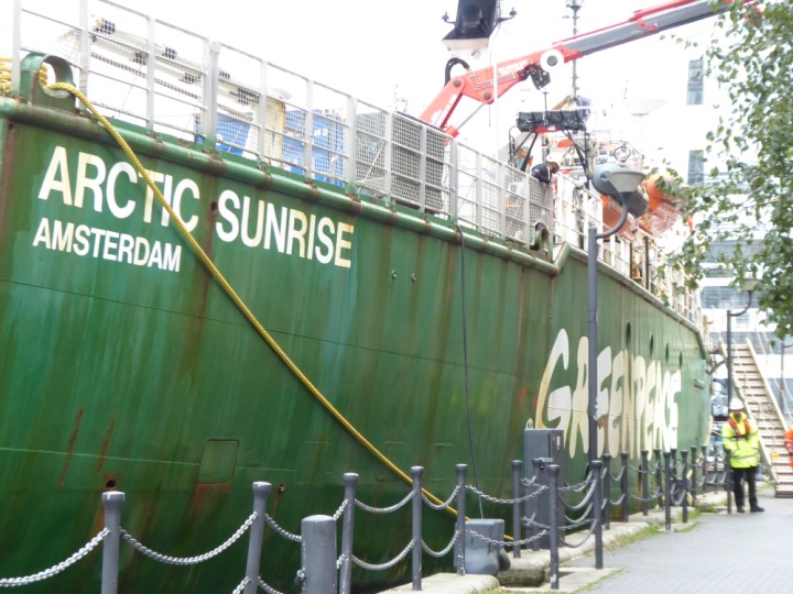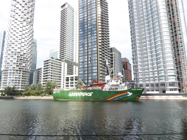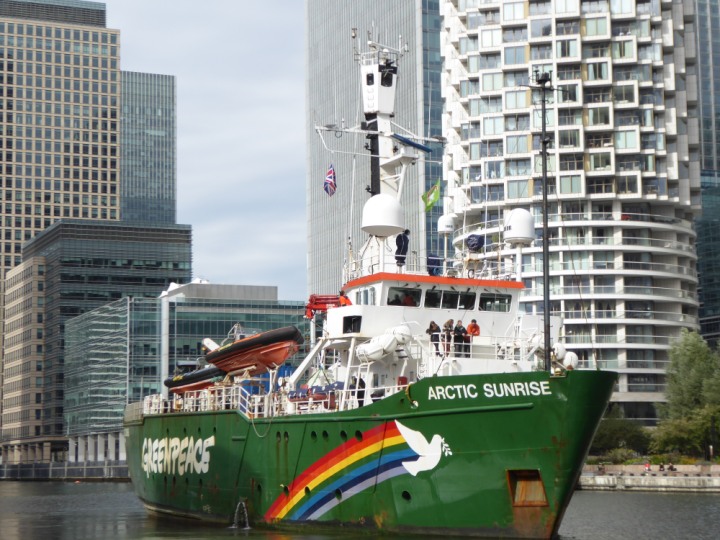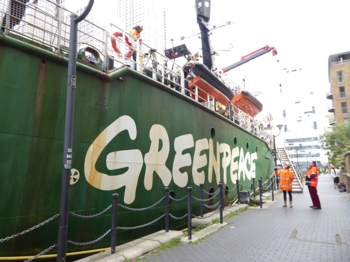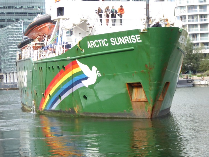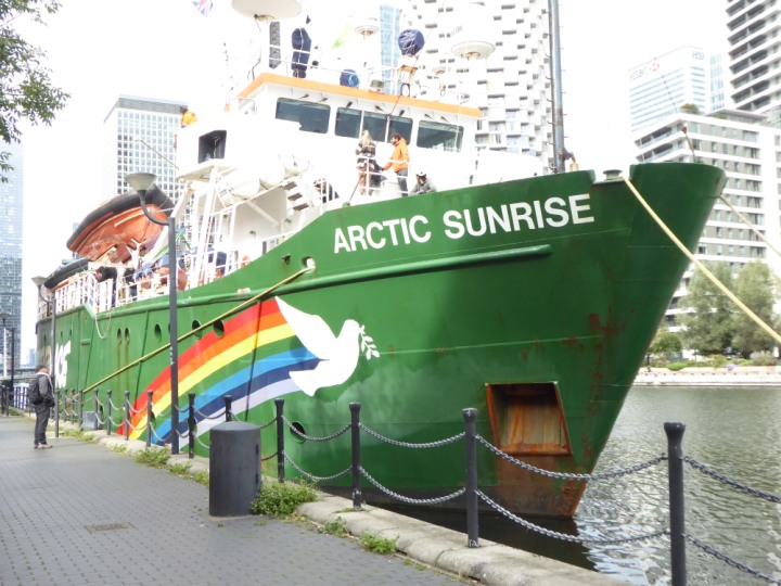 ARCTIC SUNRISE romagic. 24 * *Click a Photo Above   once Big, click Right    Arrow in corner >   to start Slide Show   or Fast F/FW  > I did get these photos of it's departure on Sunday 29th on a dry sunny morning. Wednesday 25 September 2024 West India Dock this ship arrived early, rain showers were on and off all day. no photos. GREENPEACE ARCTIC SUNRISE L:50.5x11.55m (165x37.9ft+)
