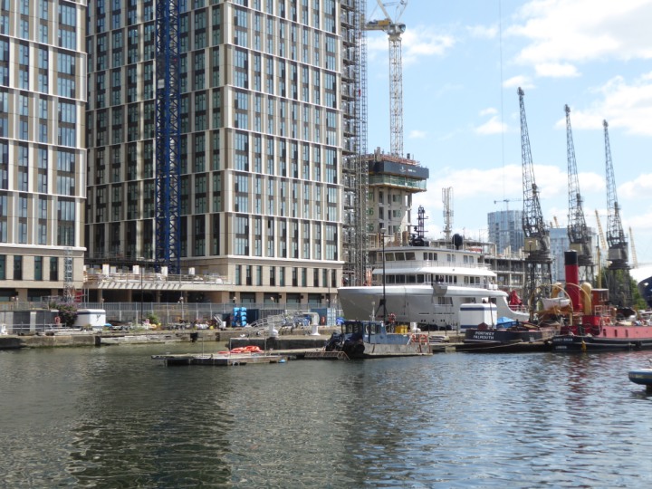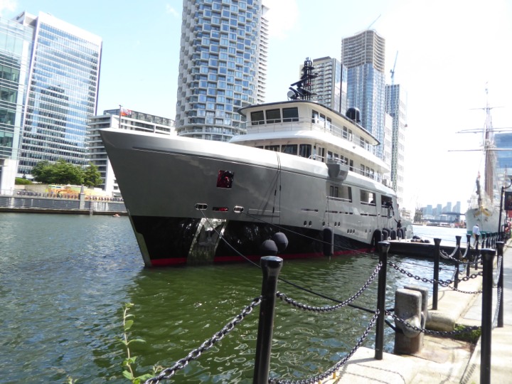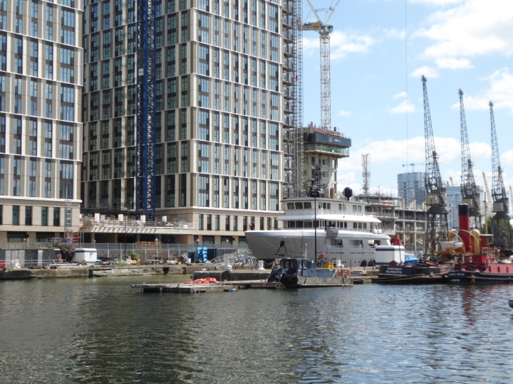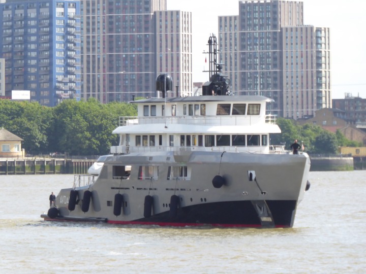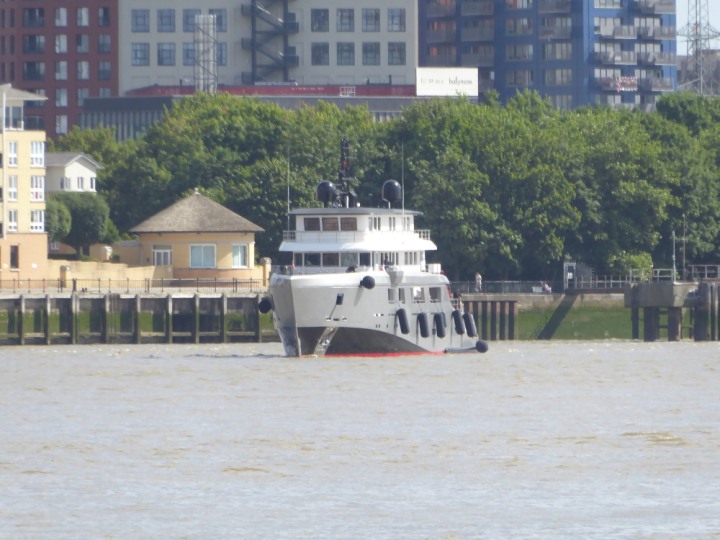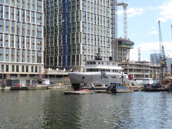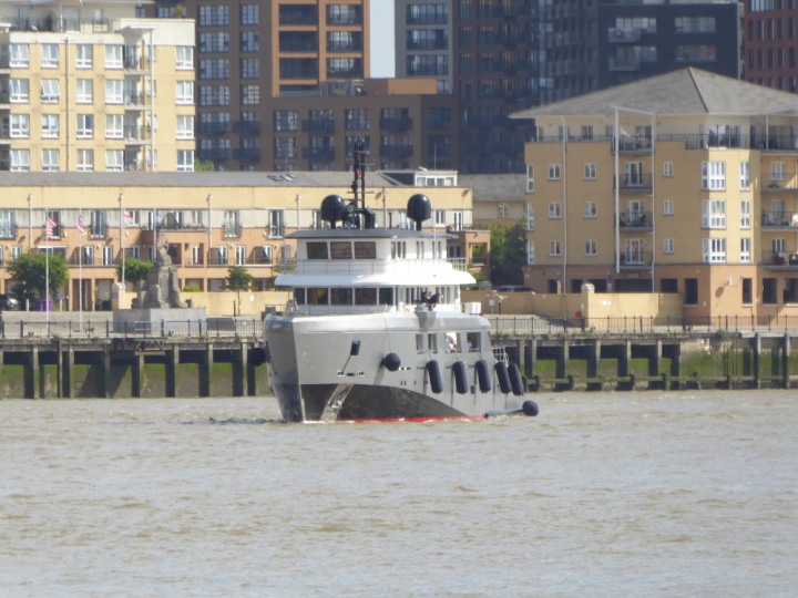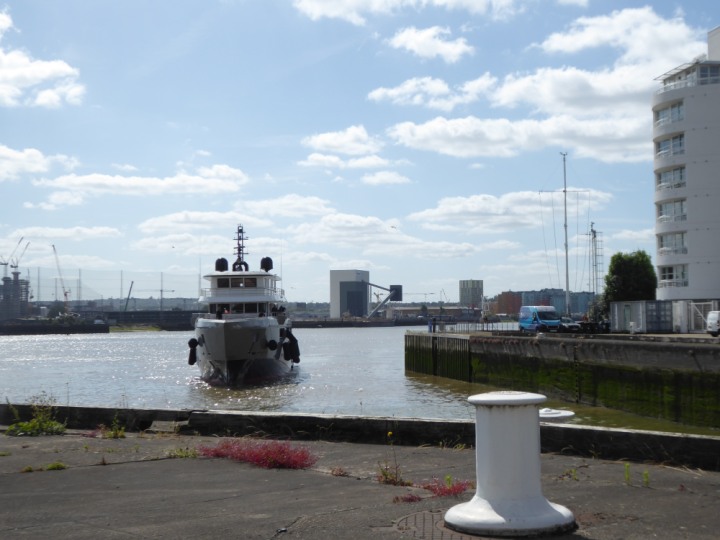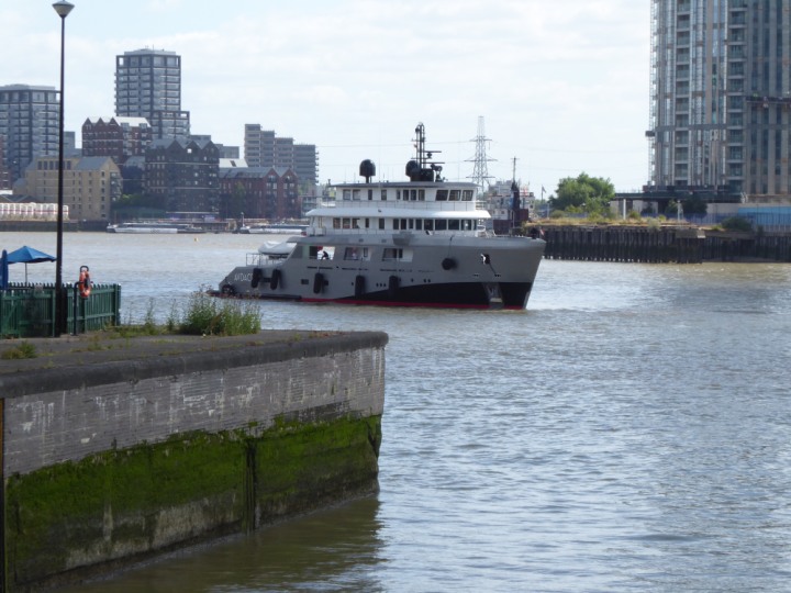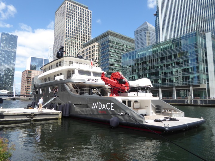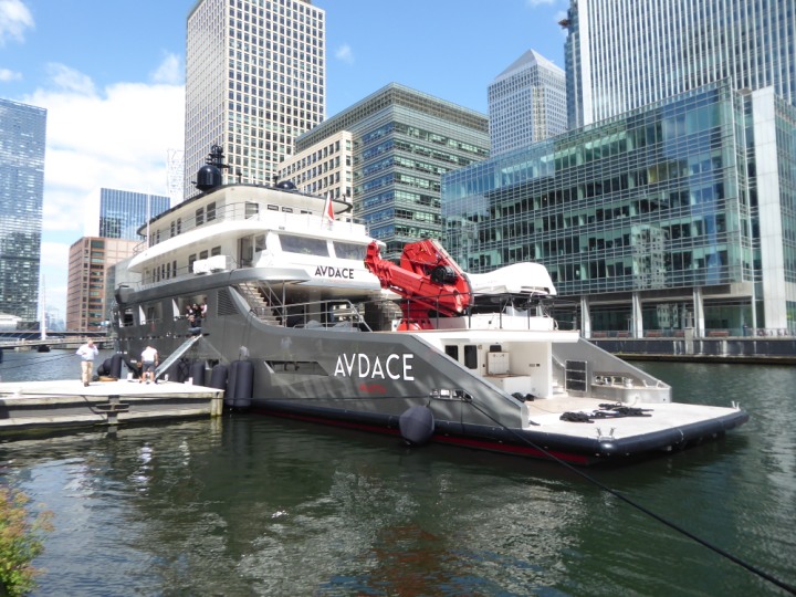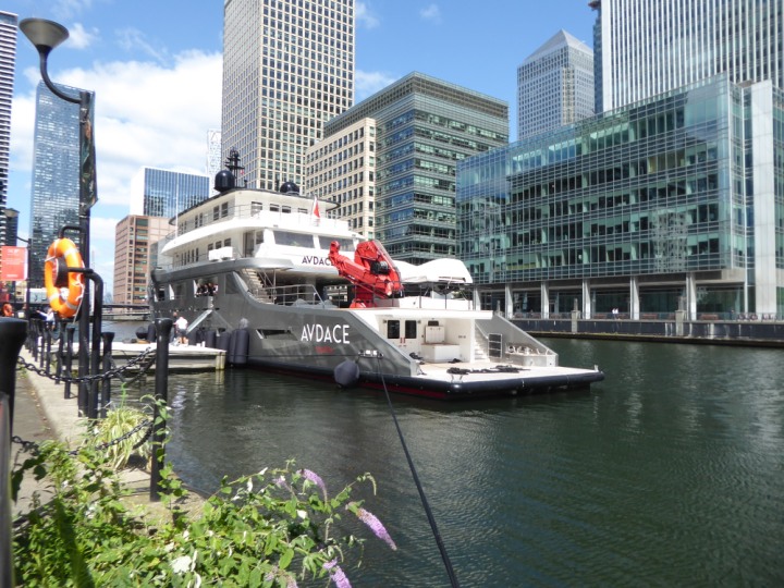 AVDACE romagic. 24 * *Click a Photo Above   once Big, click Right    Arrow in corner >   to start Slide Show   or Fast F/FW  > L:46.6x9.4m (152x30ft+) Thursday 04 July 2024 Super Yacht arrived 10am the high tide was 12 noon, but this yacht decided to take a chance and come in early to West India Dock. Only staying one day and leaving 6pm Friday.