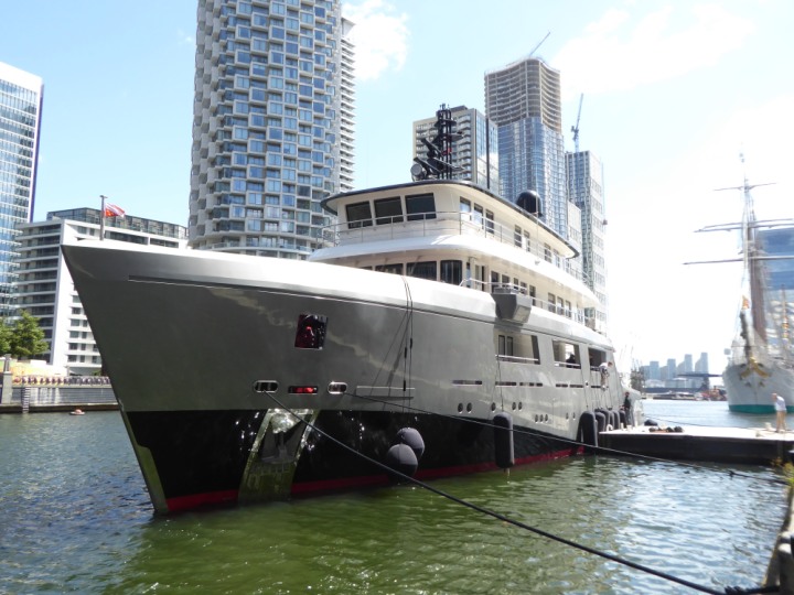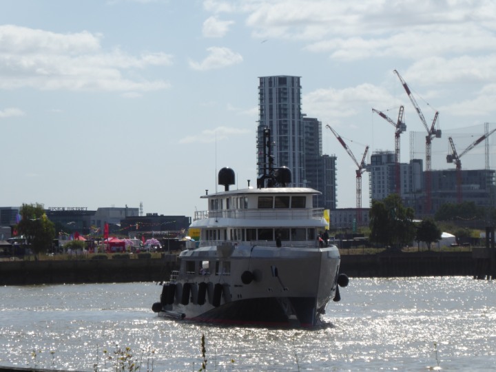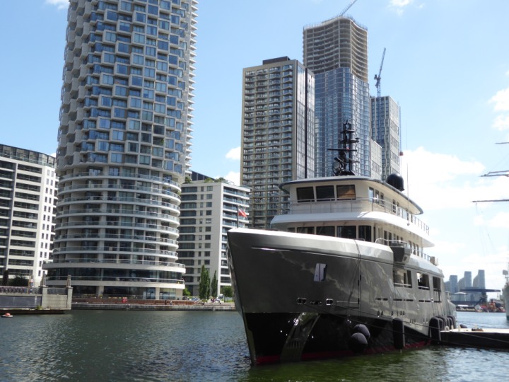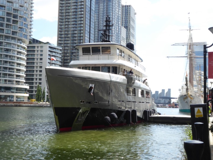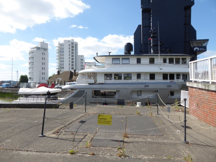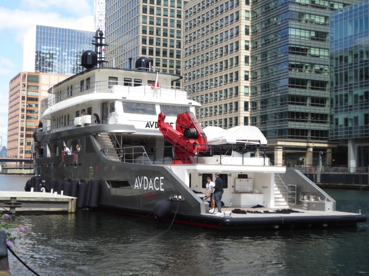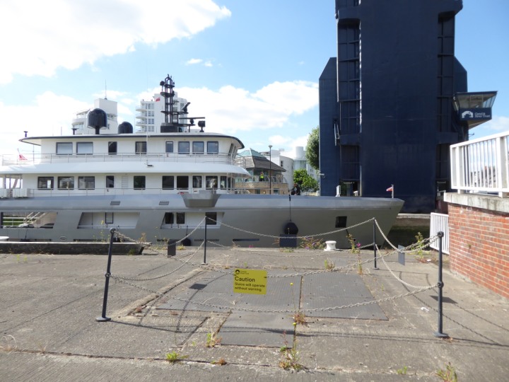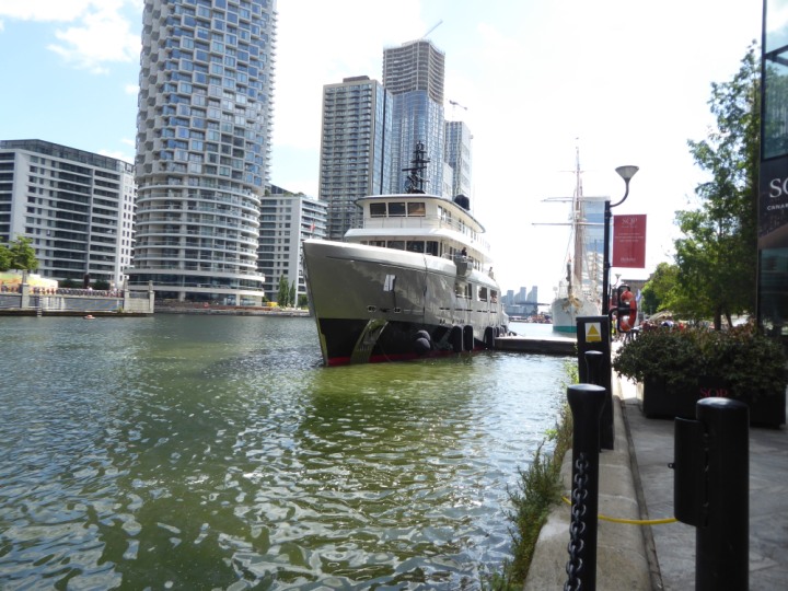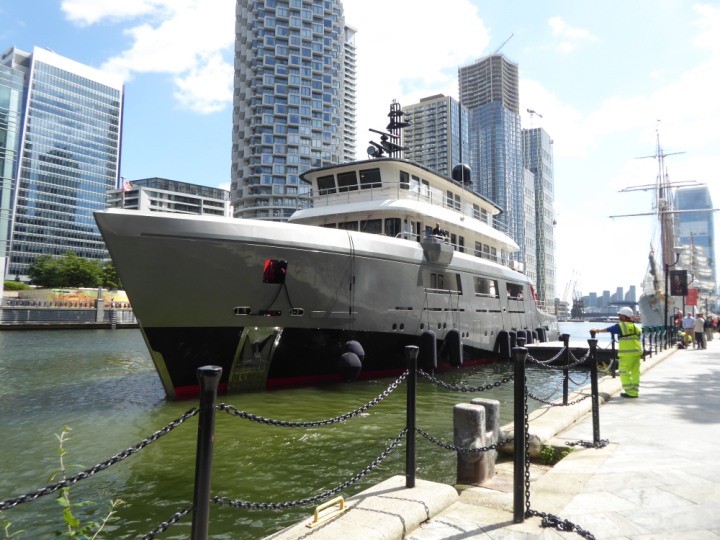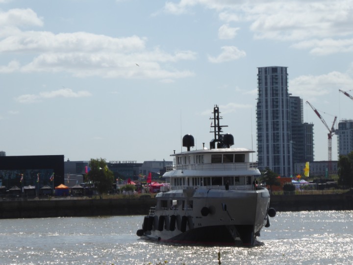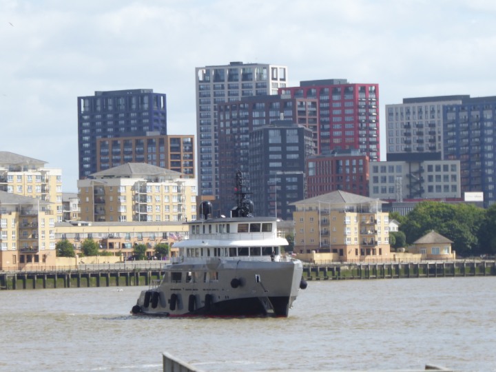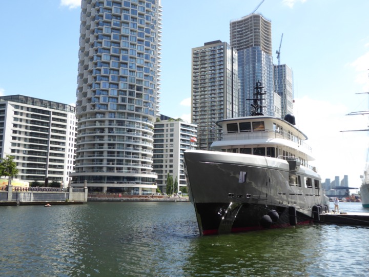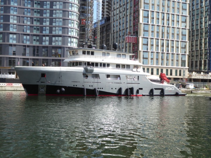 AVDACE romagic. 24 * *Click a Photo Above   once Big, click Right    Arrow in corner >   to start Slide Show   or Fast F/FW  > L:46.6x9.4m (152x30ft+) Thursday 04 July 2024 Super Yacht arrived 10am the high tide was 12 noon, but this yacht decided to take a chance and come in early to West India Dock. Only staying one day and leaving 6pm Friday.