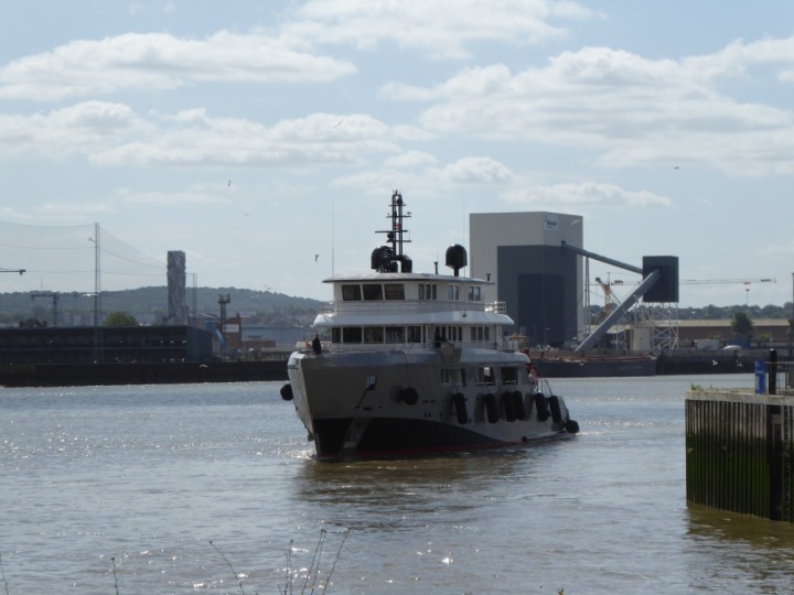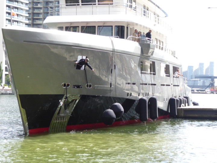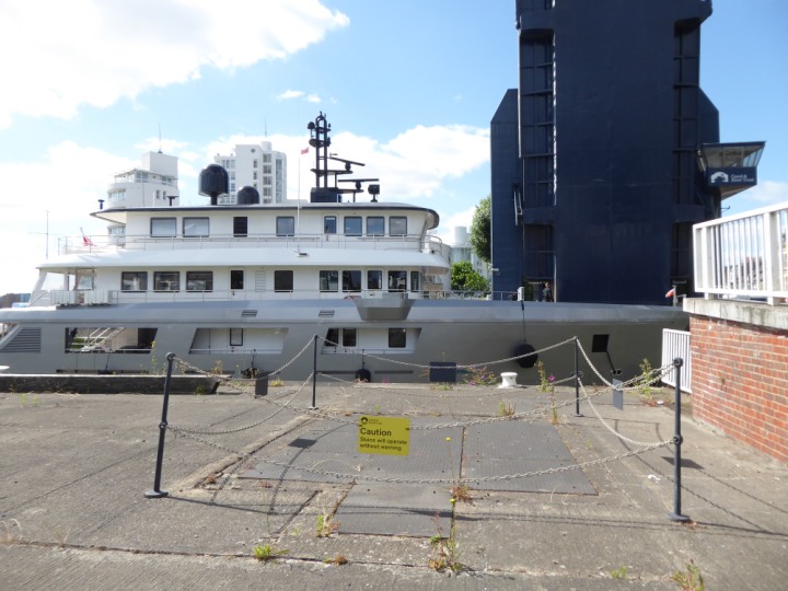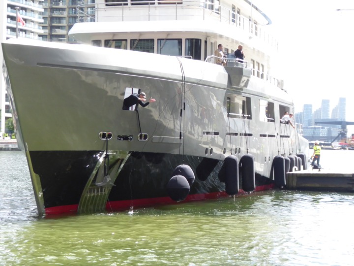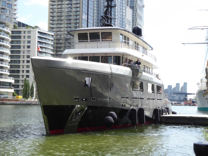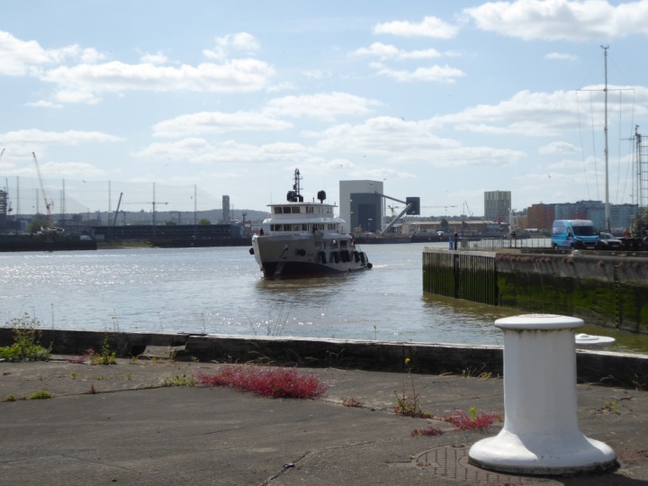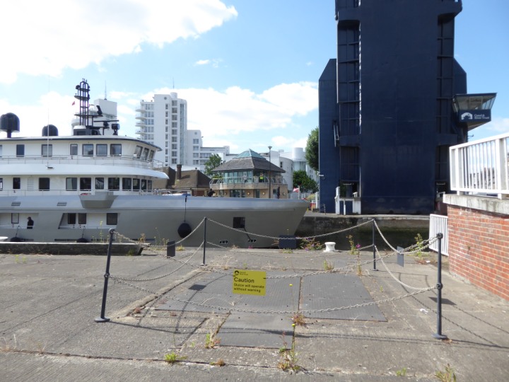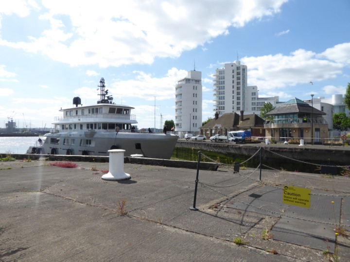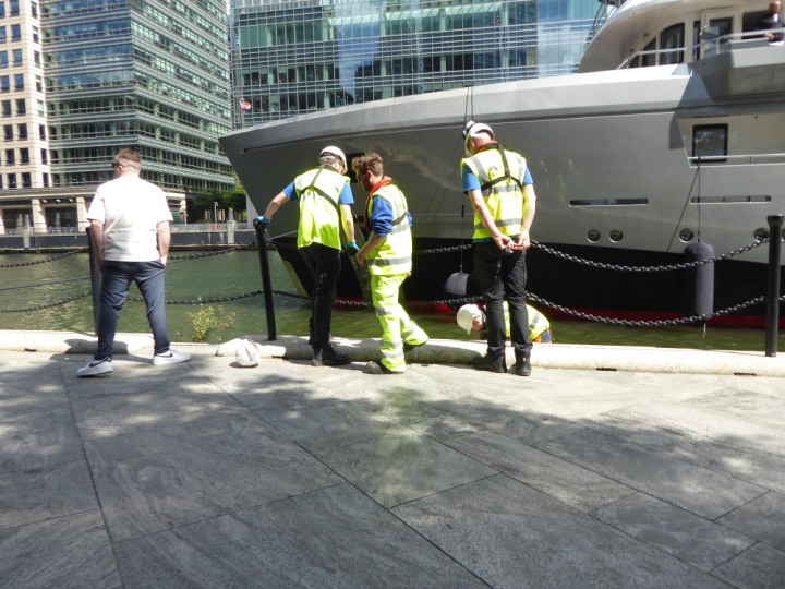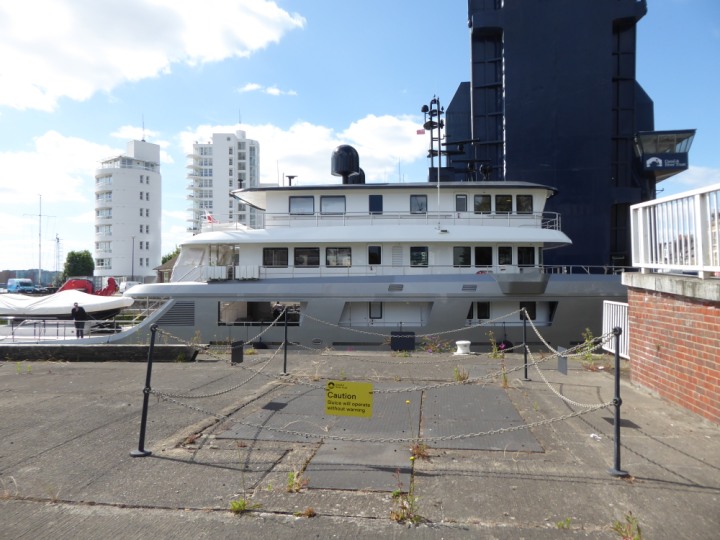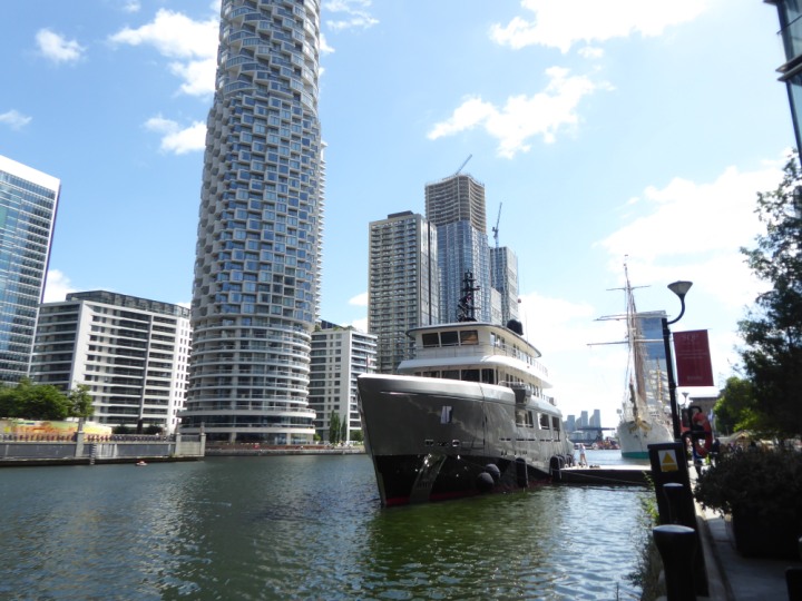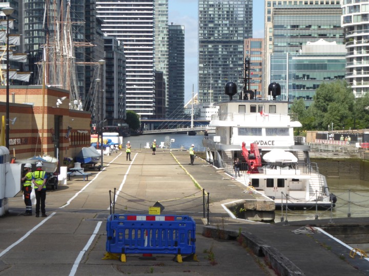 AVDACE romagic. 24 * *Click a Photo Above   once Big, click Right    Arrow in corner >   to start Slide Show   or Fast F/FW  > L:46.6x9.4m (152x30ft+) Thursday 04 July 2024 Super Yacht arrived 10am the high tide was 12 noon, but this yacht decided to take a chance and come in early to West India Dock. Only staying one day and leaving 6pm Friday.