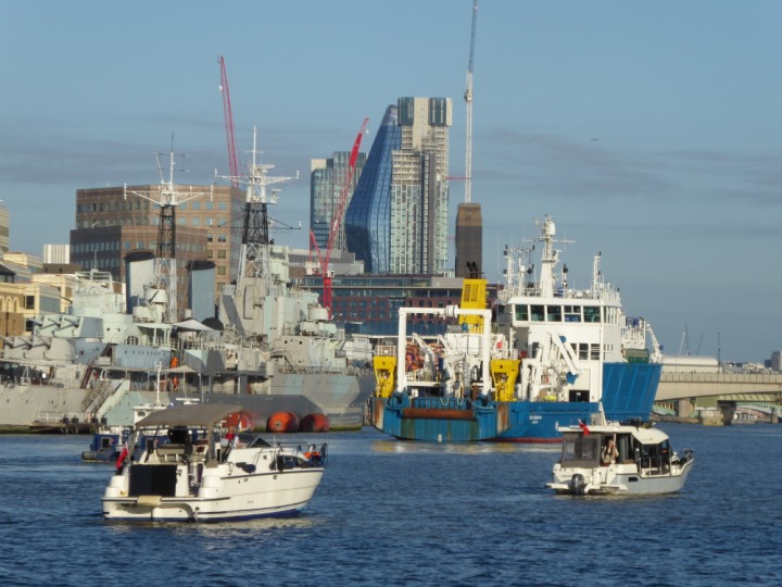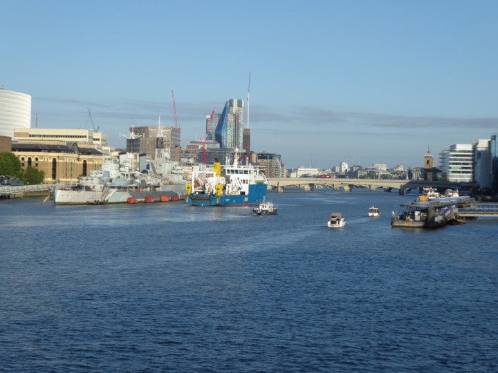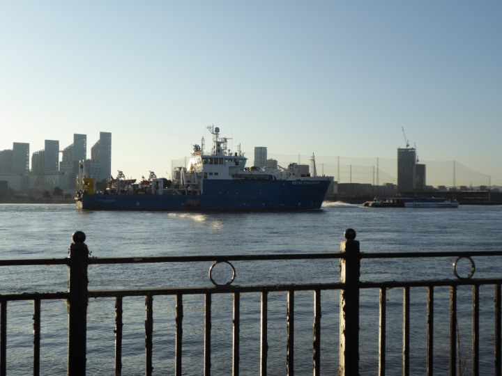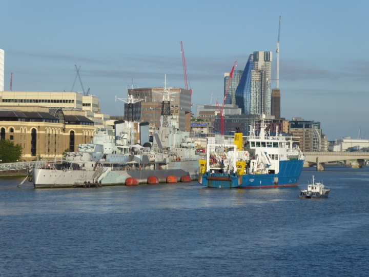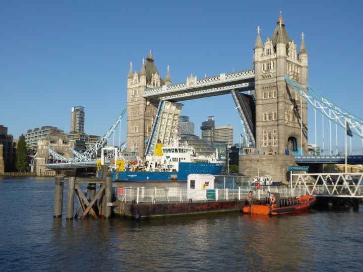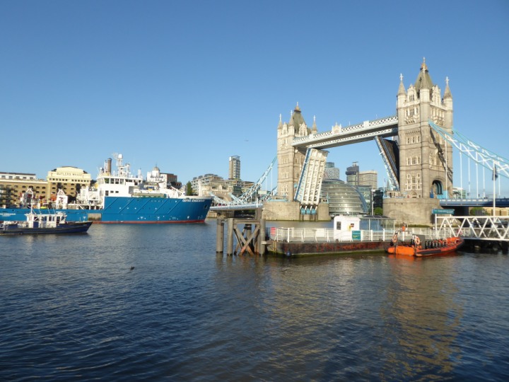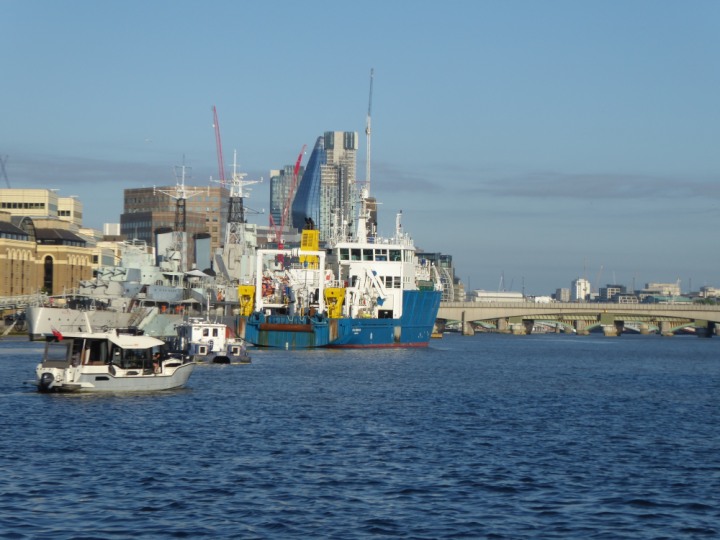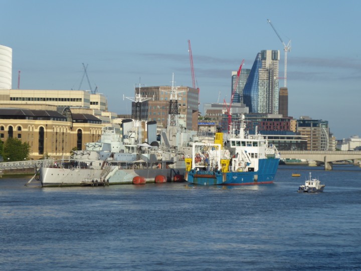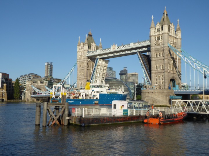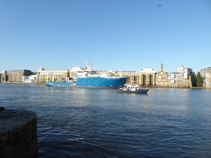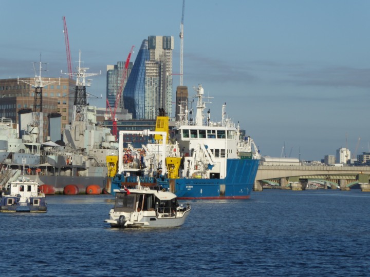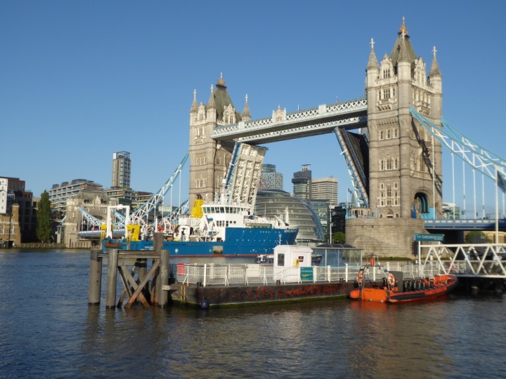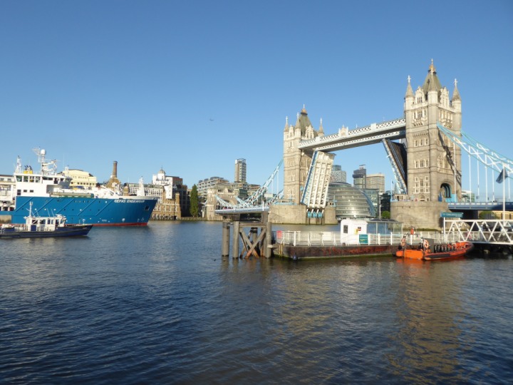 CEFAS  ENDEVOUR .25 romagic.co.uk * Tower Bridge upper *Click a Photo Above   once Big, click Right    Arrow in corner >   to start Slide Show   or Fast F/FW  > MV CEFAS ENDEVOUR L:74x16m (242x52ft+) Monday 30 June 2025. 6:05 This Survey, Research vessel due at Tower Bridge Lift 6:45 and is staying til Wednesday 18:30pm. Built 2003 under UK Flag