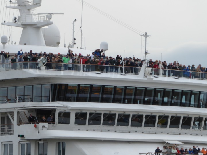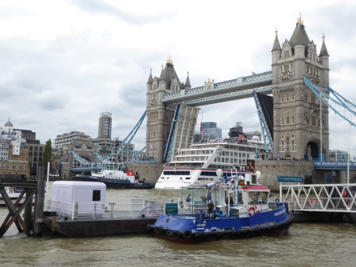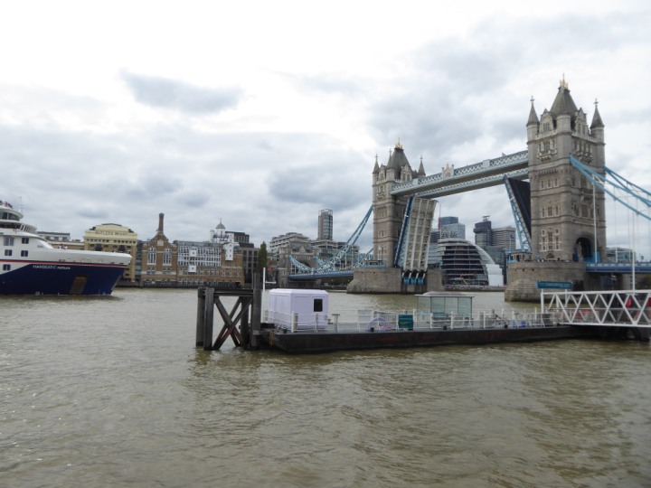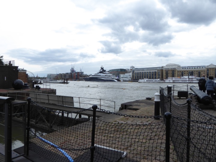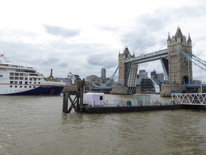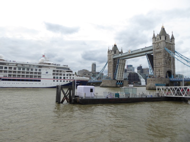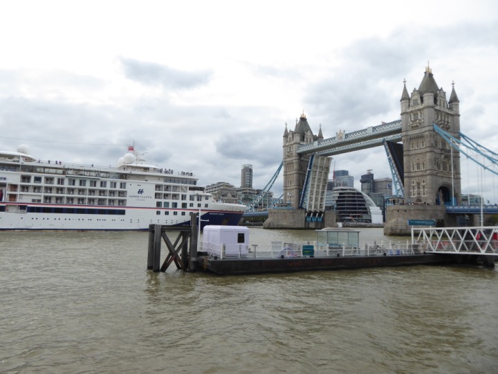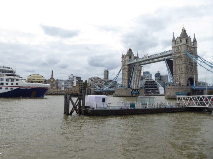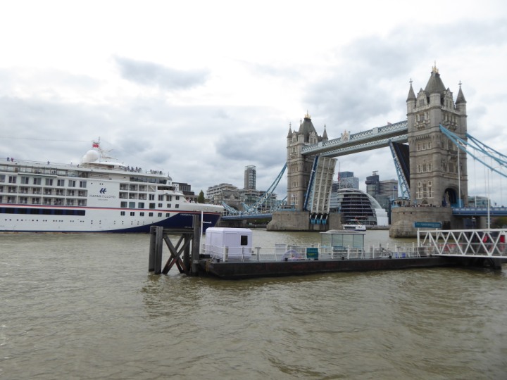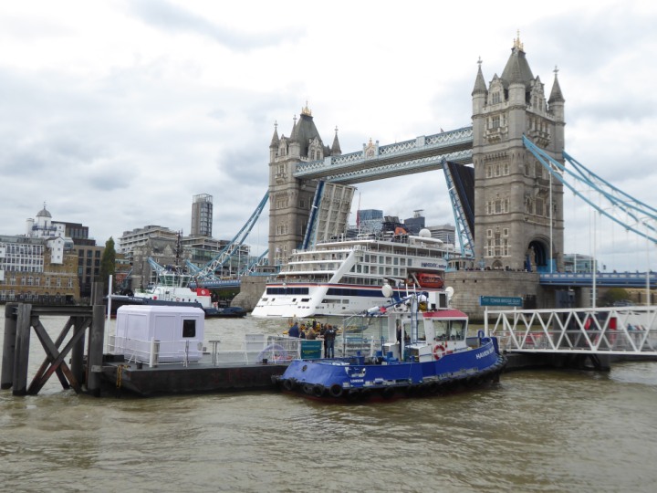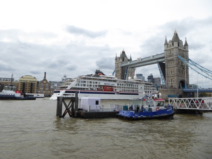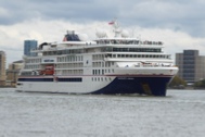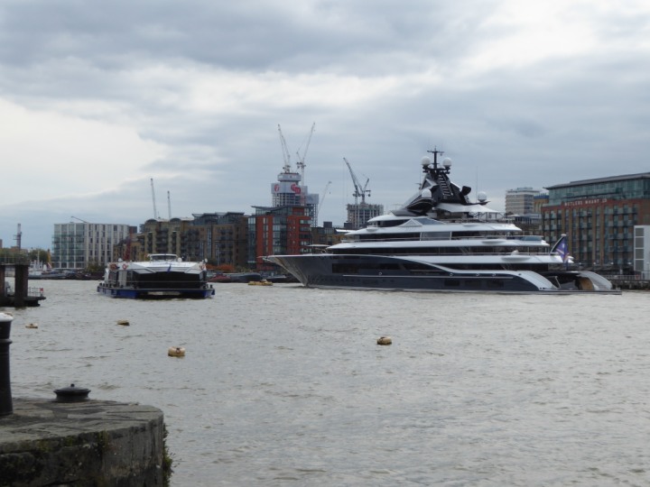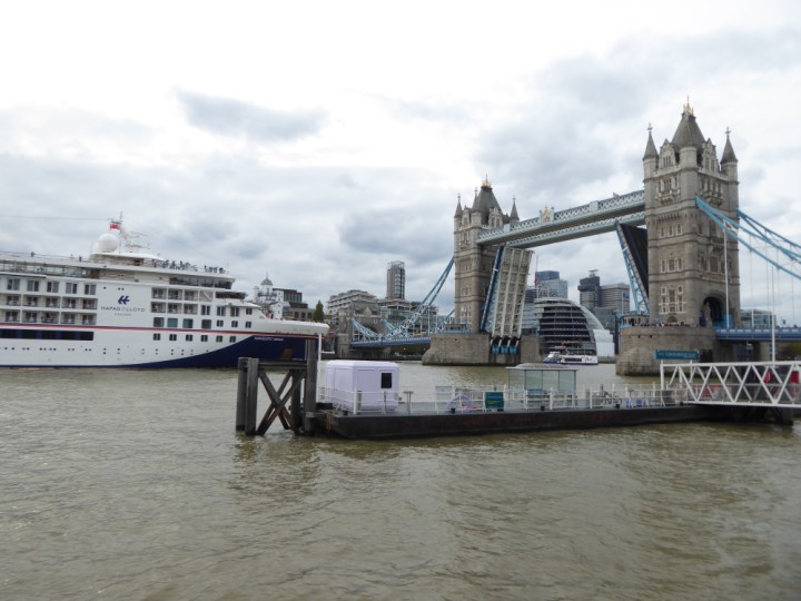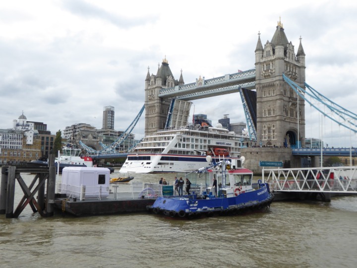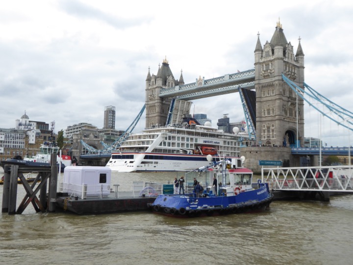 HANSEATIC NATURE romagic. 25 * *Click a Photo Above   once Big, click Right    Arrow in corner >   to start Slide Show   or Fast F/FW  > L: 138x22m (455x72ft+) Saturday 18 October 2025 Cruise Ship returns to London on a cloudy overcast lunchtime. Passing 'KISMET Mega Yacht on it's way towards  Tower Bridge lift 13:15pm and will moor alongside HMS Belfast ship  til it's departure on Sunday 19th at 13:45pm.