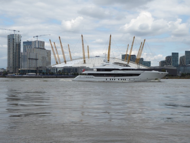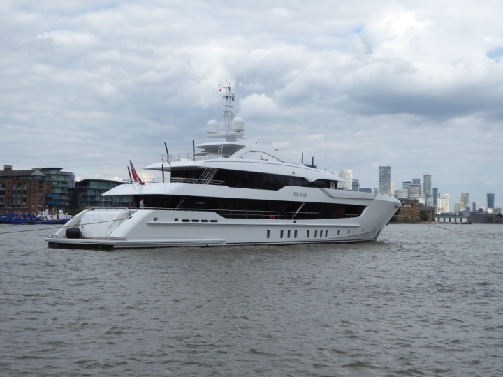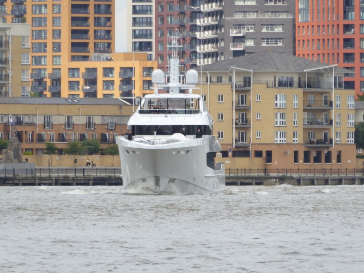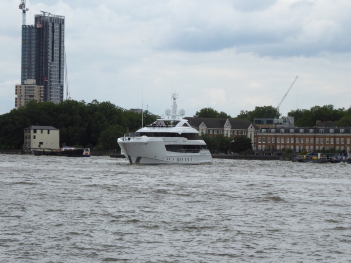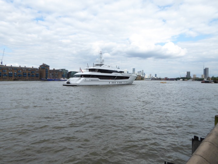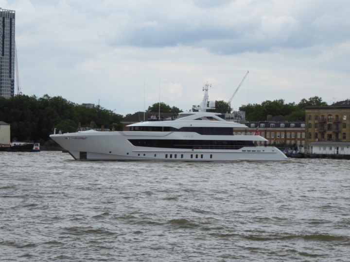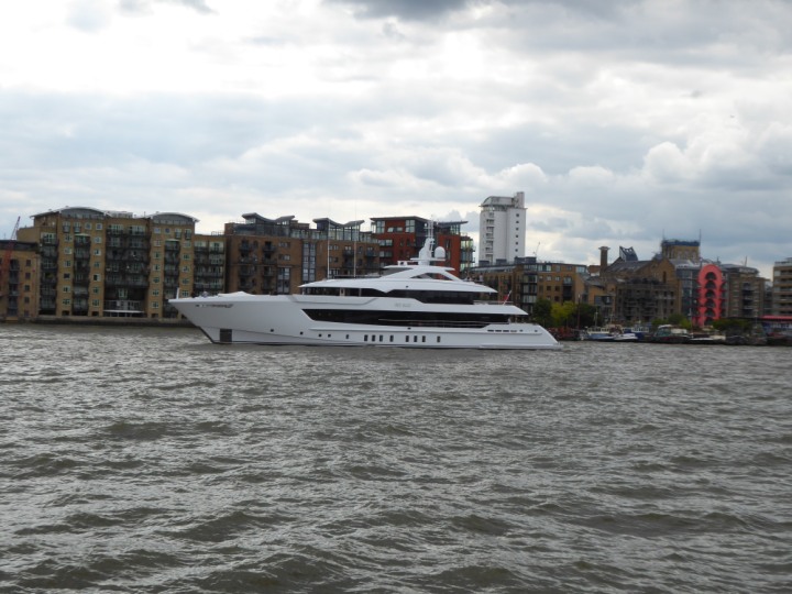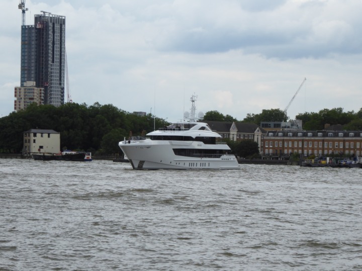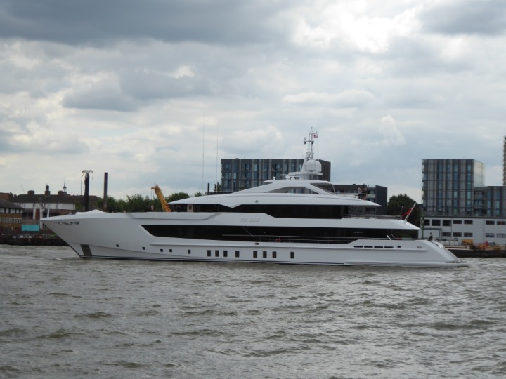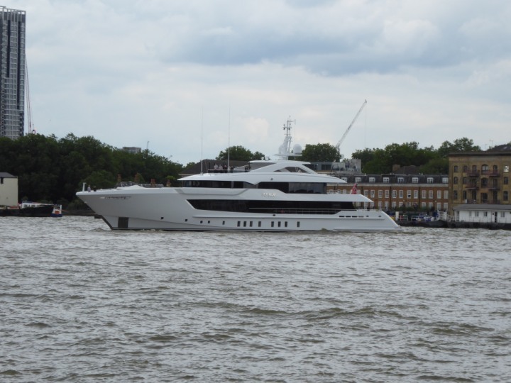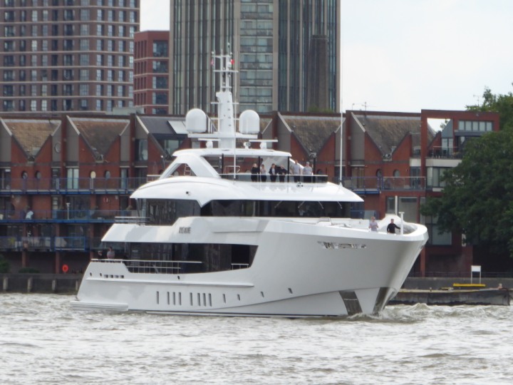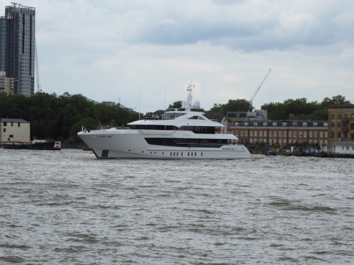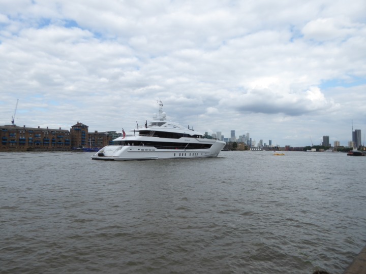 IRIS BLUE romagic. 24 * *Click a Photo Above   once Big, click Right    Arrow in corner >   to start Slide Show   or Fast F/FW  > L:55x10m (180x31ft+) Tuesday 23 July 2024 Brand New Super Yacht February this year the owner took possession of this 55 meter yacht. A warm overcast afternoon just before Tower Bridge the Yacht was turned round and  reversed back to moor near Butlers Wharf at 4pm.