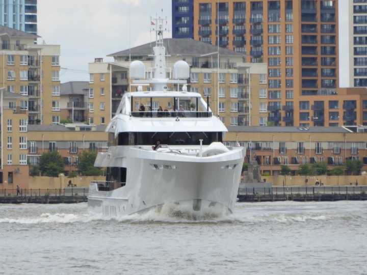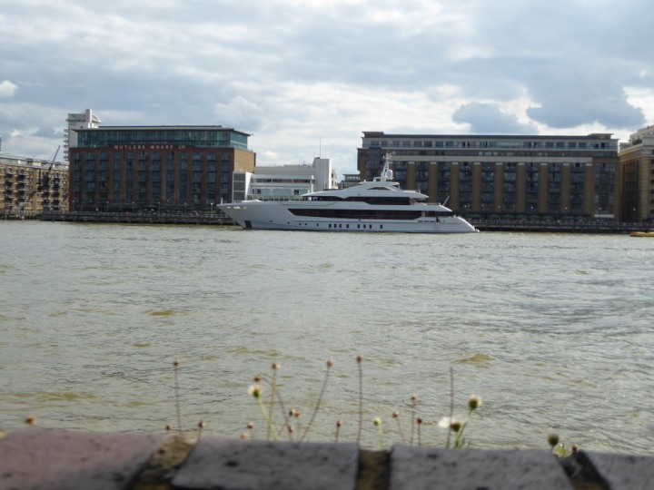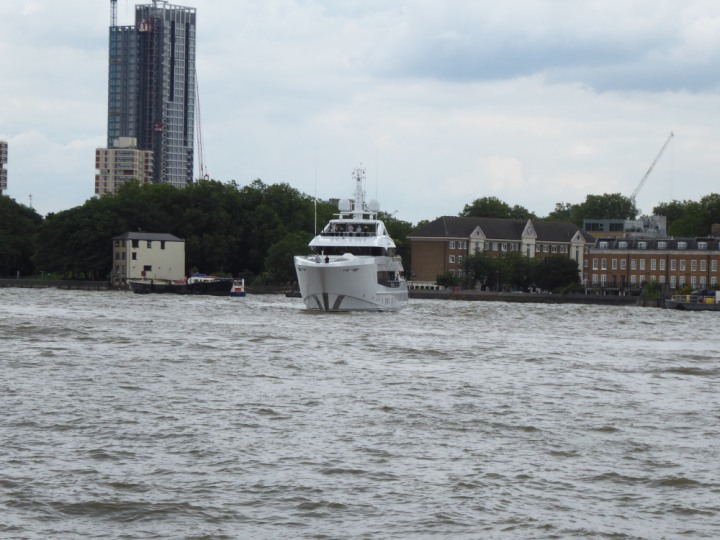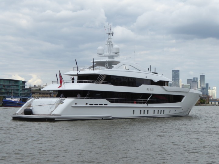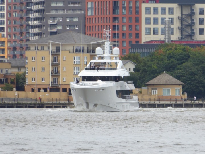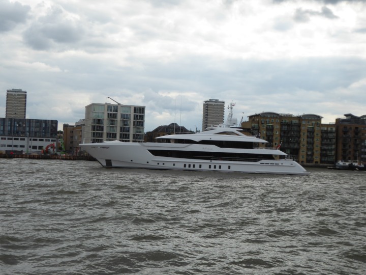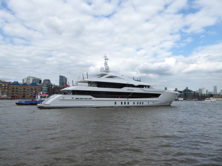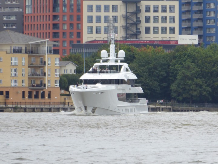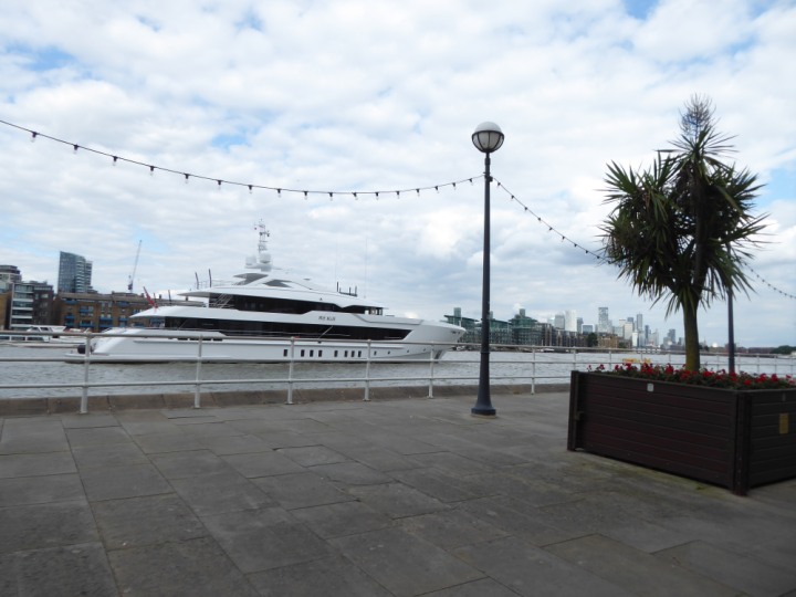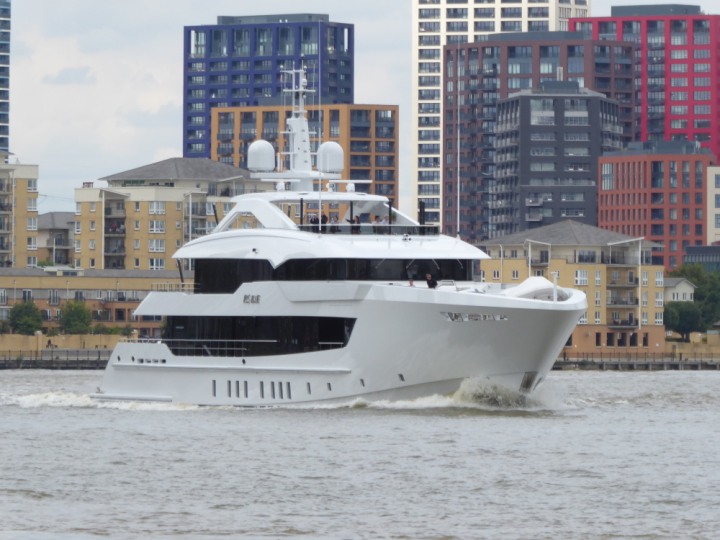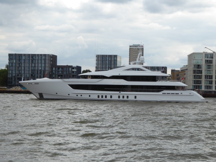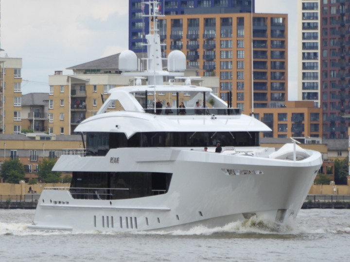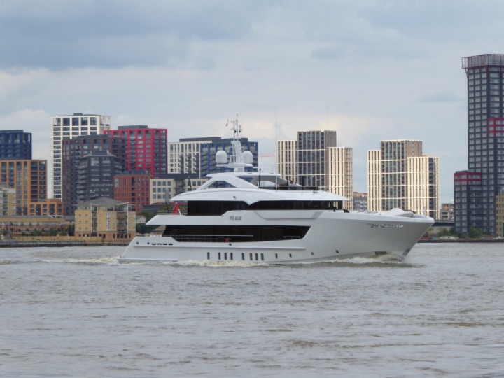 IRIS BLUE romagic. 24 * *Click a Photo Above   once Big, click Right    Arrow in corner >   to start Slide Show   or Fast F/FW  > L:55x10m (180x31ft+) Tuesday 23 July 2024 Brand New Super Yacht February this year the owner took possession of this 55 meter yacht. A warm overcast afternoon just before Tower Bridge the Yacht was turned round and  reversed back to moor near Butlers Wharf at 4pm.