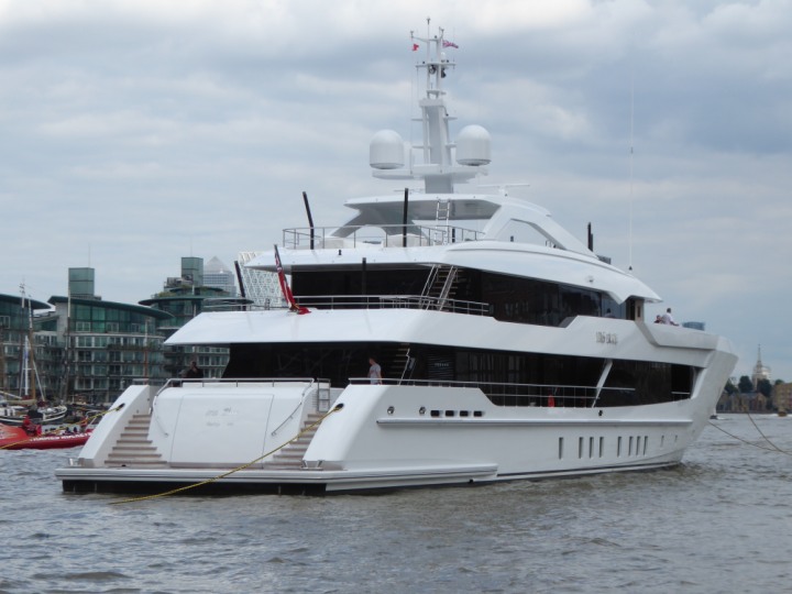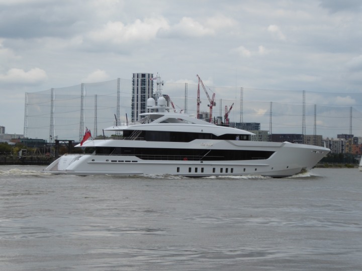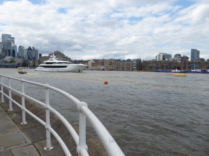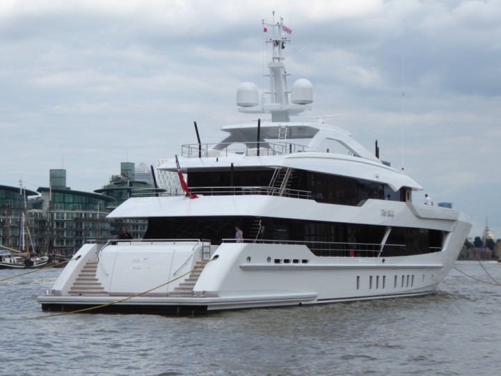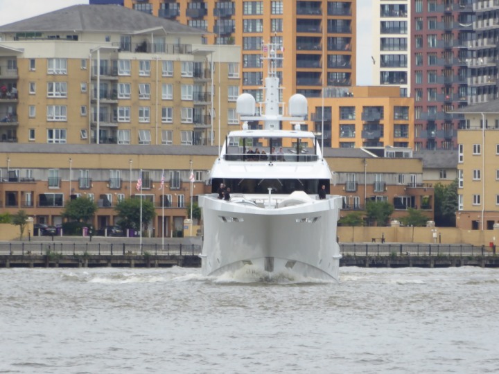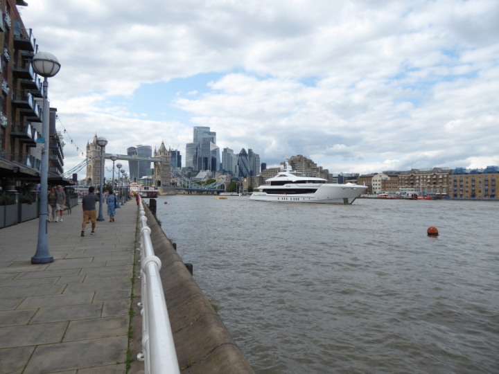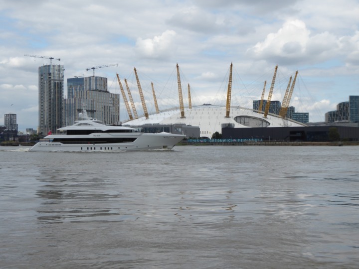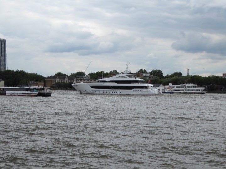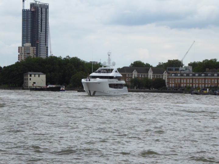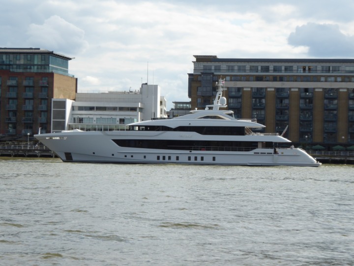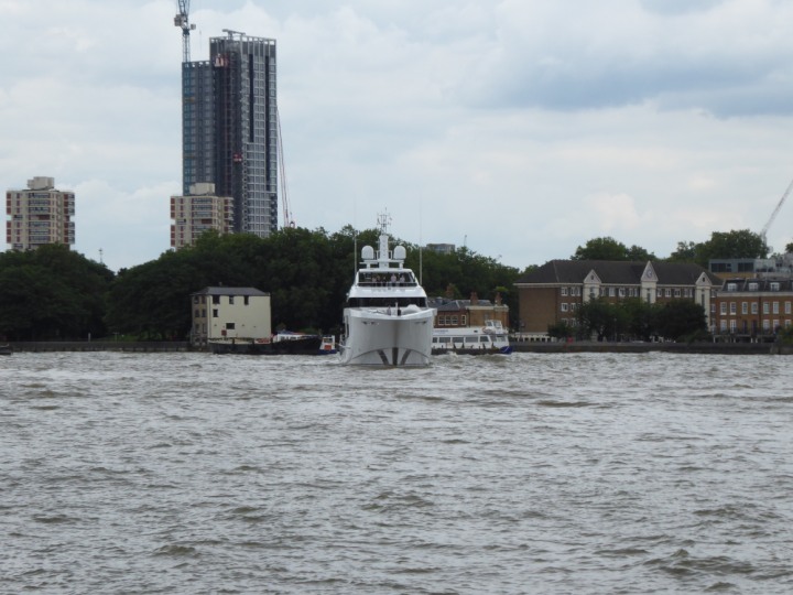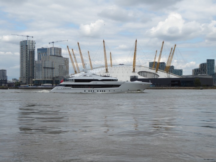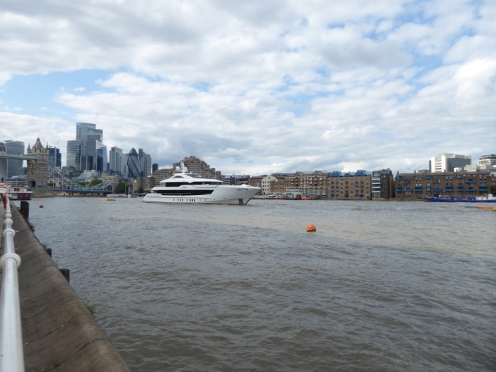 IRIS BLUE romagic. 24 * *Click a Photo Above   once Big, click Right    Arrow in corner >   to start Slide Show   or Fast F/FW  > L:55x10m (180x31ft+) Tuesday 23 July 2024 Brand New Super Yacht February this year the owner took possession of this 55 meter yacht. A warm overcast afternoon just before Tower Bridge the Yacht was turned round and  reversed back to moor near Butlers Wharf at 4pm.