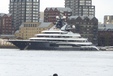 Butlers Wharf  T.B KISMET .24 romagic. 24m L:122 x17.8m (401 x58ft+) Thursday 10th October 2024 Mega Yacht . First visit to London and is new this year. 16:58pm at the 02 Dome going to  'Butlers Wharf just before Tower Bridge. This Yacht was turned around at a wider part  of the river and then reversed backwards to it's moorings 17:45. Weather,sunny morning but afternoon cloudy,windy, rain.