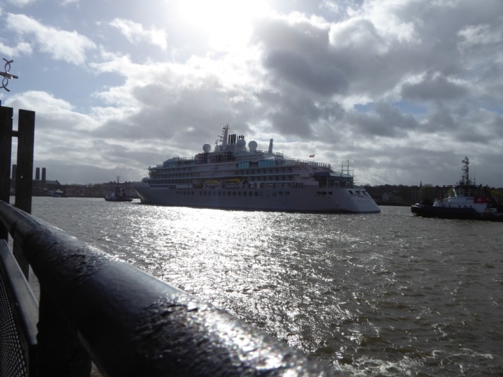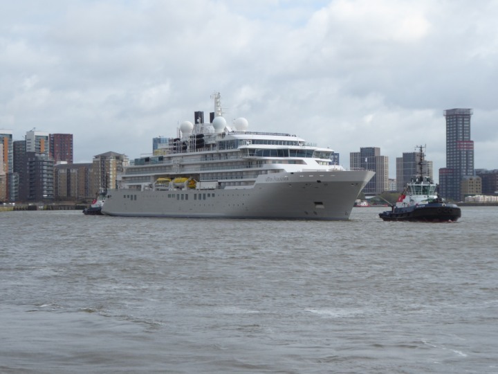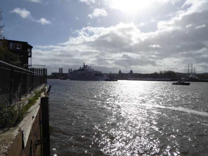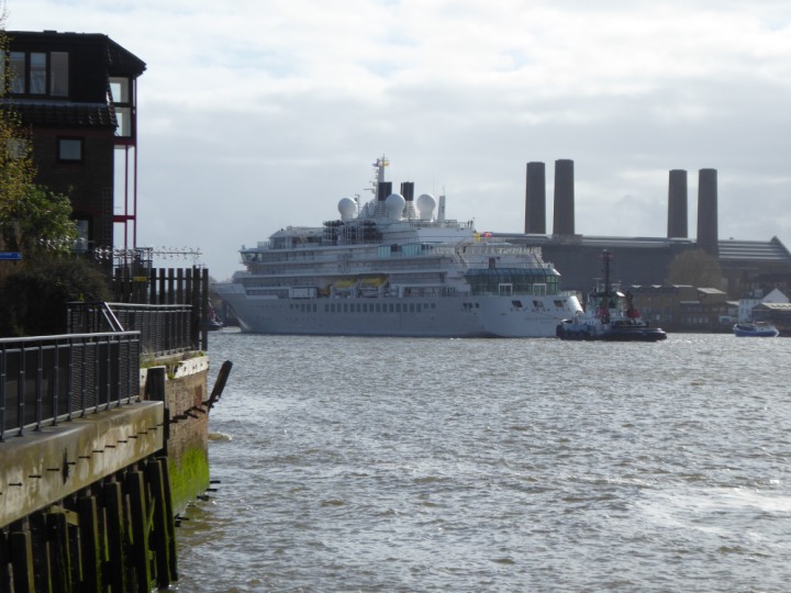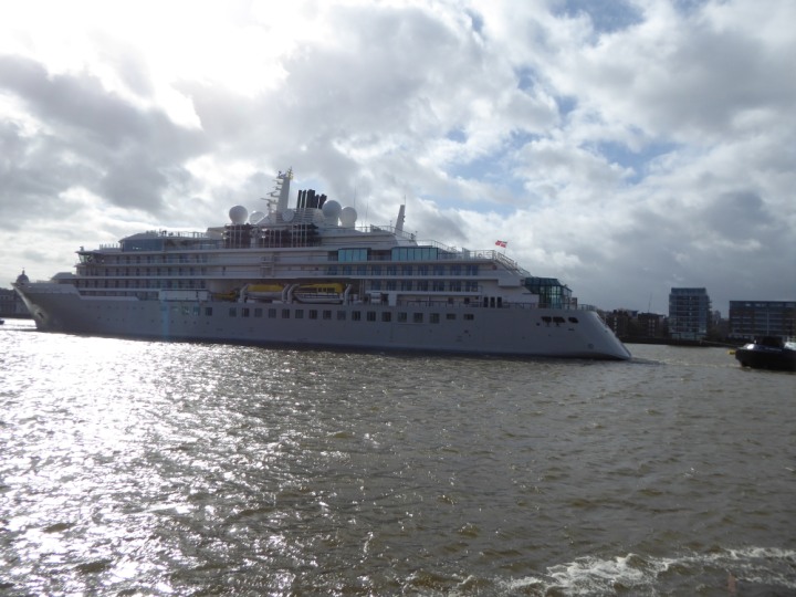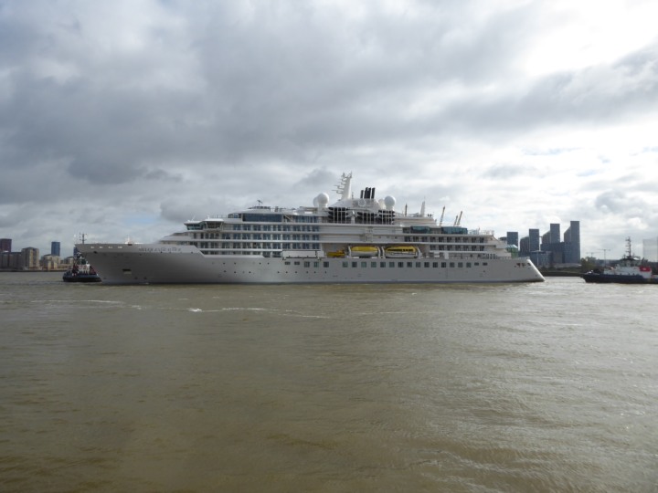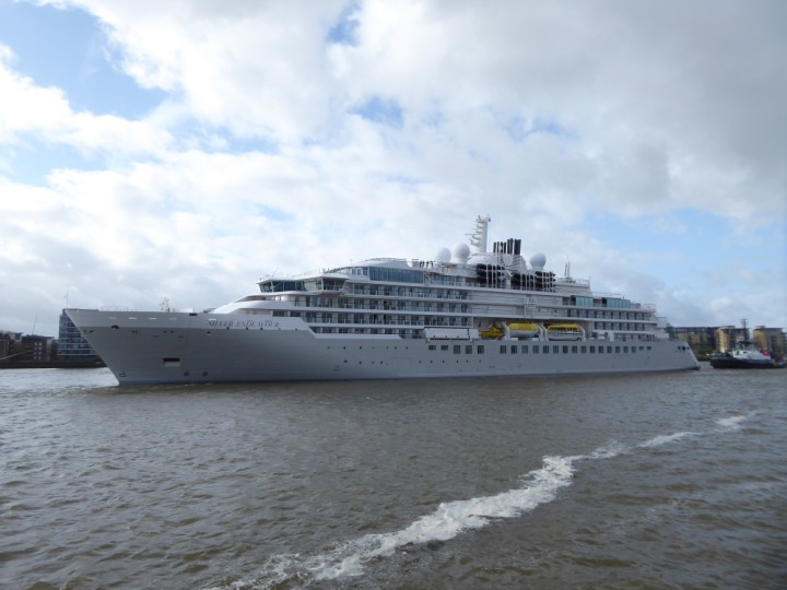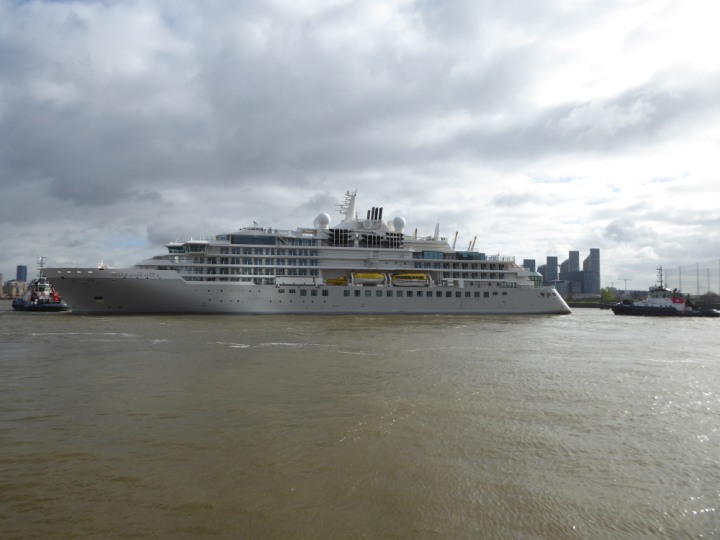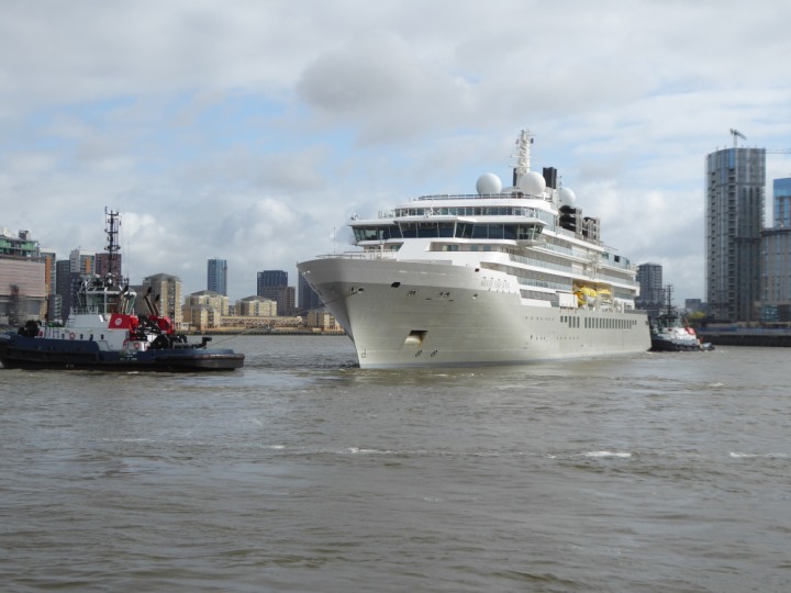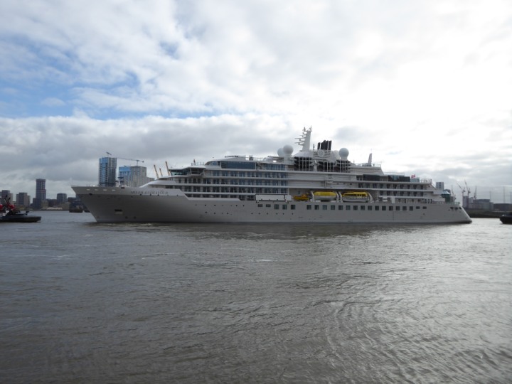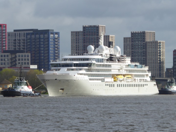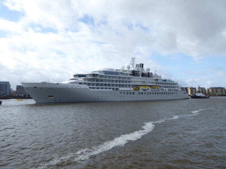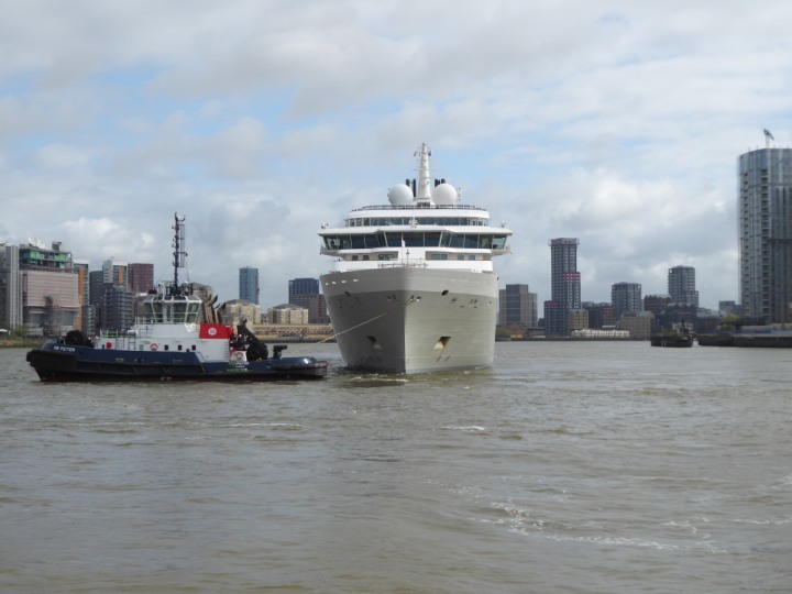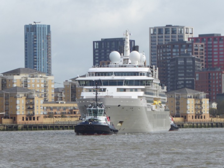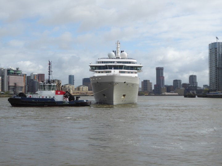 SILVER ENDEAVOUR * romagic. 24 *Click a Photo Above   once Big, click Right    Arrow in corner >   to start Slide Show   or Fast F/FW  > L:164x28.4m (538x93ft+) SILVER ENDEAVOUR Friday 05 April  08:30am The First Super Yacht to visit London 2024 Two Tugs spun the ship around at the 02 Dome to reverse back to the Greenwich Tier Terminal. Departure: Sunday 7th at 13:00
