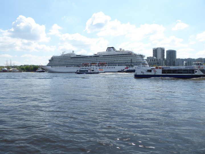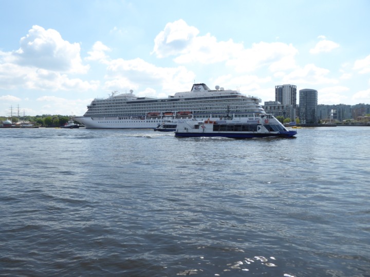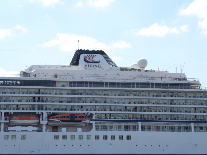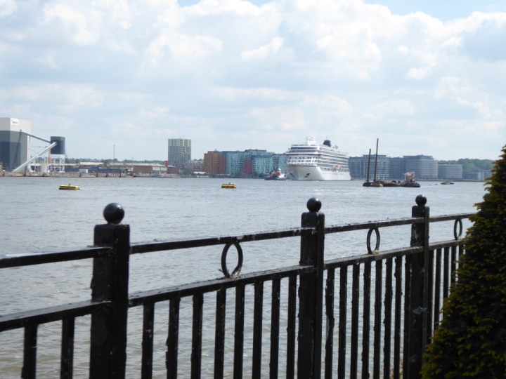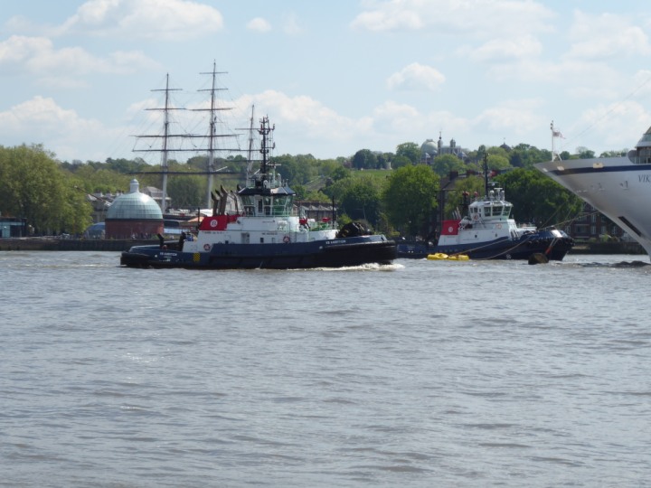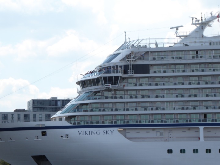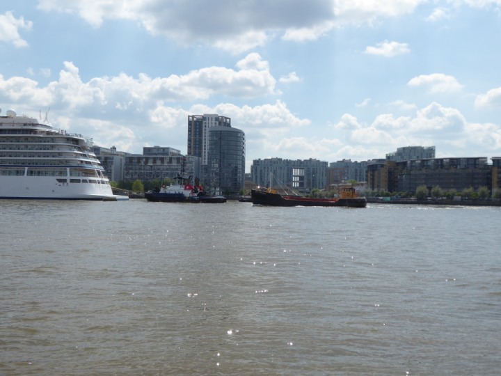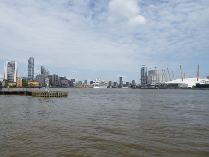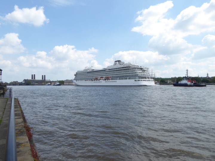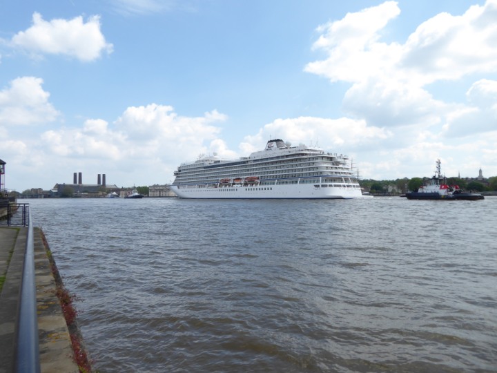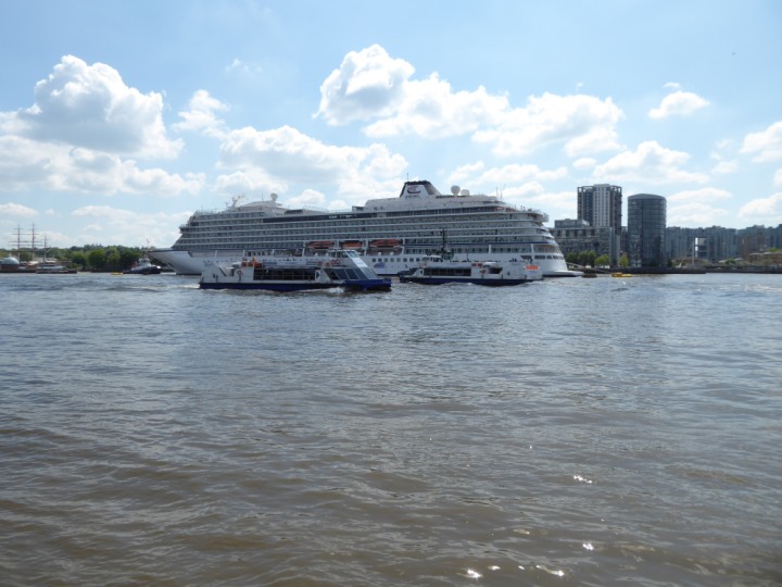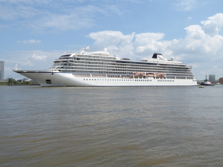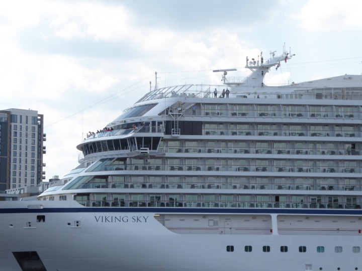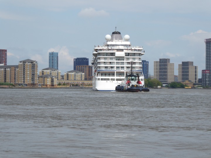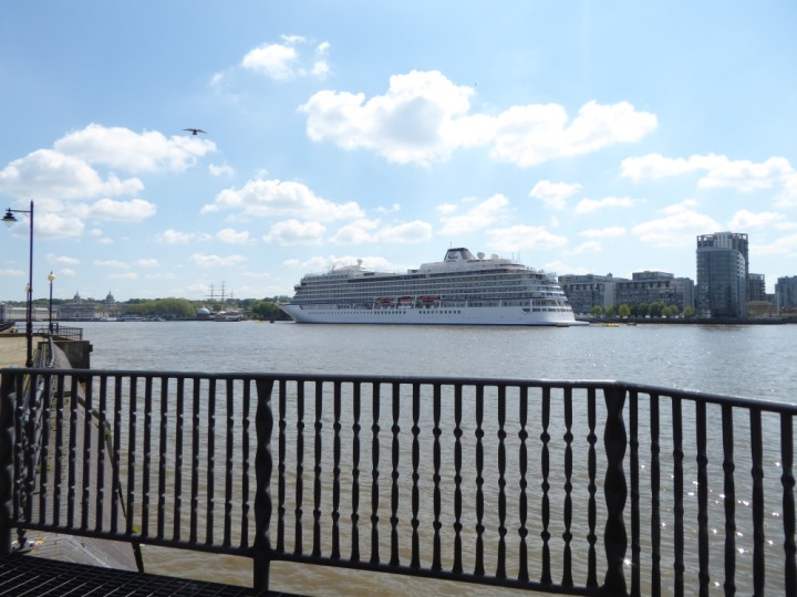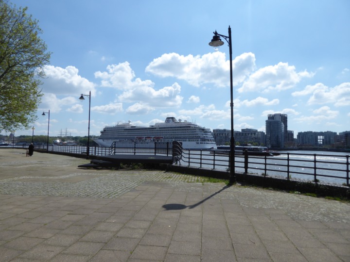 VIKING SKY romagic. 24 * *Click a Photo Above   once Big, click Right    Arrow in corner >   to start Slide Show   or Fast F/FW  > VIKING SKY Sunday 05 May  Ship arrived early morning on the high tide, (no pic's)  but I did get down to Greenwich Tier on Tuesday for it's departure at 13:30pm.  Sunny bright day, really warm T-Shirt weather, the last few  days rain. L:227x29m (745x94ft+)